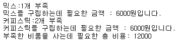 print(f"부족한 비품을 사는데 필요한 총 비용: {total_money}")