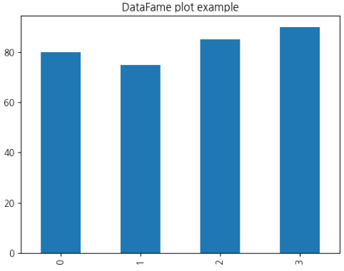 df['score'].plot(kind='bar', x='name', title='DataFame plot example')