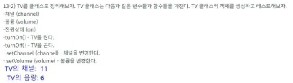 tv = TV(True, 0, 0) # 전원 On(True)하고, 채널=0, 볼륨=0 으로 객체(인스타스) 생성