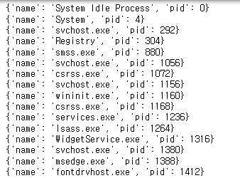 # 실행 중인 모든 프로세스 목록을 가져오기
