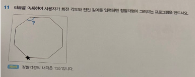 t.left(360/s) # 각도는 360도를 도형의 몇각형으로 나누면 됨