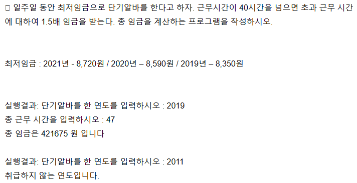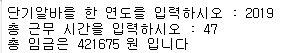 year = input('단기알바를 한 연도를 입력하시오 : ') # 근무 년월을 입력 받음