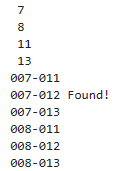 앞의 숫자가 7의 배수이고 뒤의 숫자가 3의 배수이면 "Found!"를 함께 출력한다.