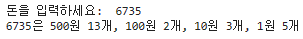 money = int(input("돈을 입력하세요: ")) # 돈 입력 받기. 문자열이기 때문에 int()로 정수로 변환
