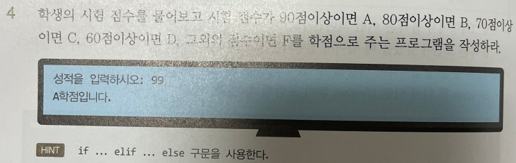 score = int(input('성적을 입력하시오: ')) # 점수 입력 받기