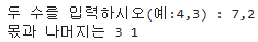 tmp = input('두 수를 입력하시오(예:4,3) :') # 두 수를 입력 받음