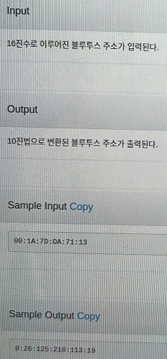 hex_lst = hex_addr.split(':') # 주소별 분리