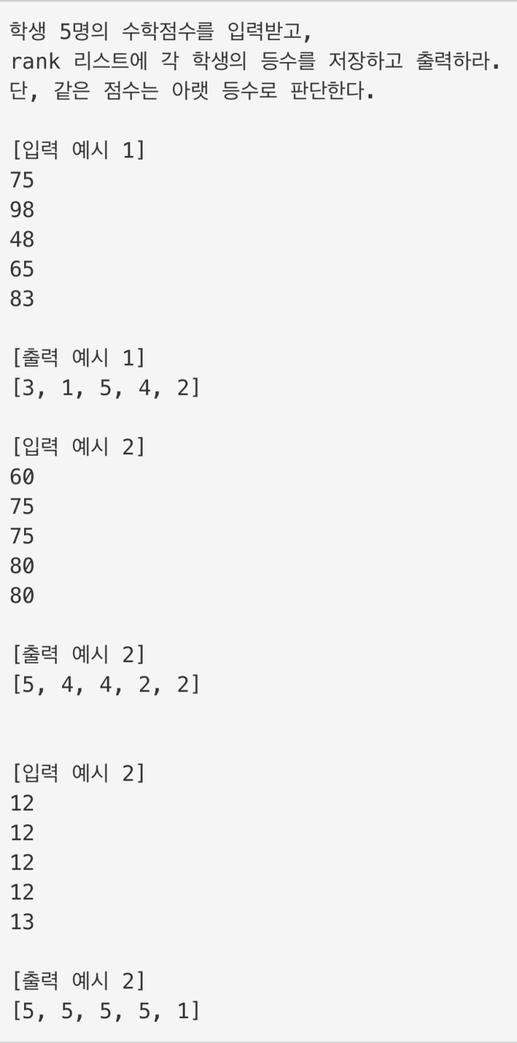 result = [len(lst) - lst1.index(lst[i]) for i in range(len(lst))] # 등수가 뒤부터 찾은 것이기 때문에 len(lst)에서 빼기 하면 됨