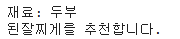재료를 입력하면 만들수있는 음식이 나오는 프로그램