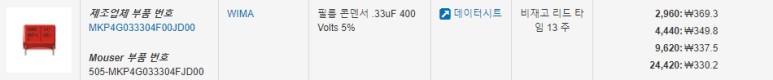 더 좋은(비싼) 콘덴서도 있겠지만 이 앰프에서 배보다 배꼽이 커지지 않도록 무난하 것으로 결정했습니다.