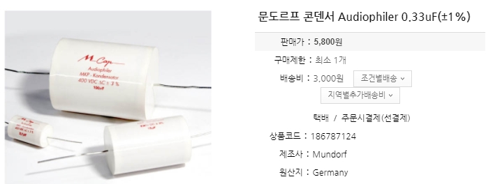기본으로 있는 콘덴서는 WIMA 콘덴서인데, 문도르프 콘덴서로 교체.