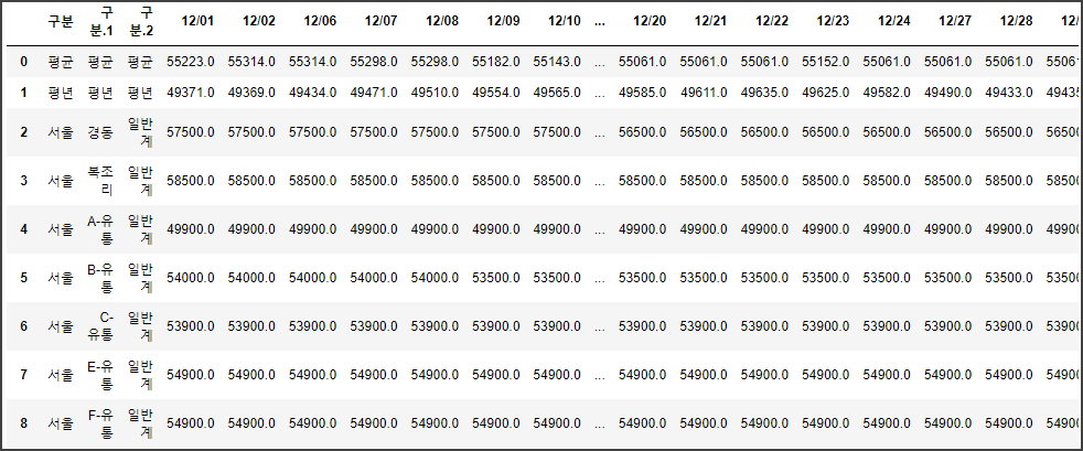 file = 'e:/RnD/Tensorflow/가격정보_쌀_20211201_20211231.xls'