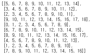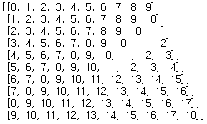 bb.append(list(range(i, i+10)))