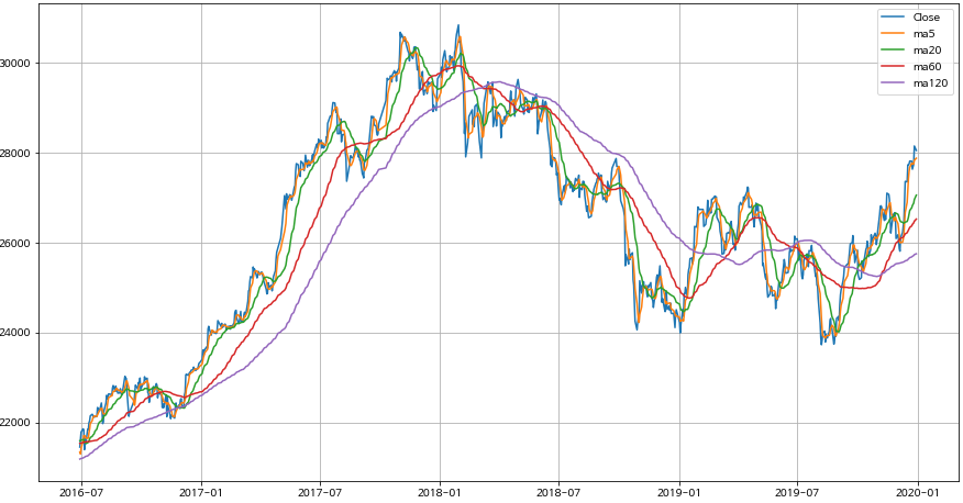 data_name = ['Close','Open','High','Low','ma5','ma20','ma60','ma120'] # 데이터 항목명
