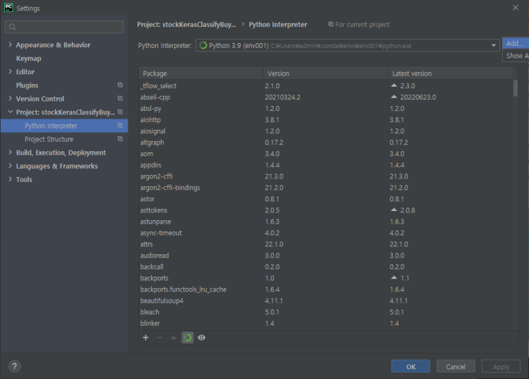 그러면 오른쪽에 'Python Interpreter' 에서