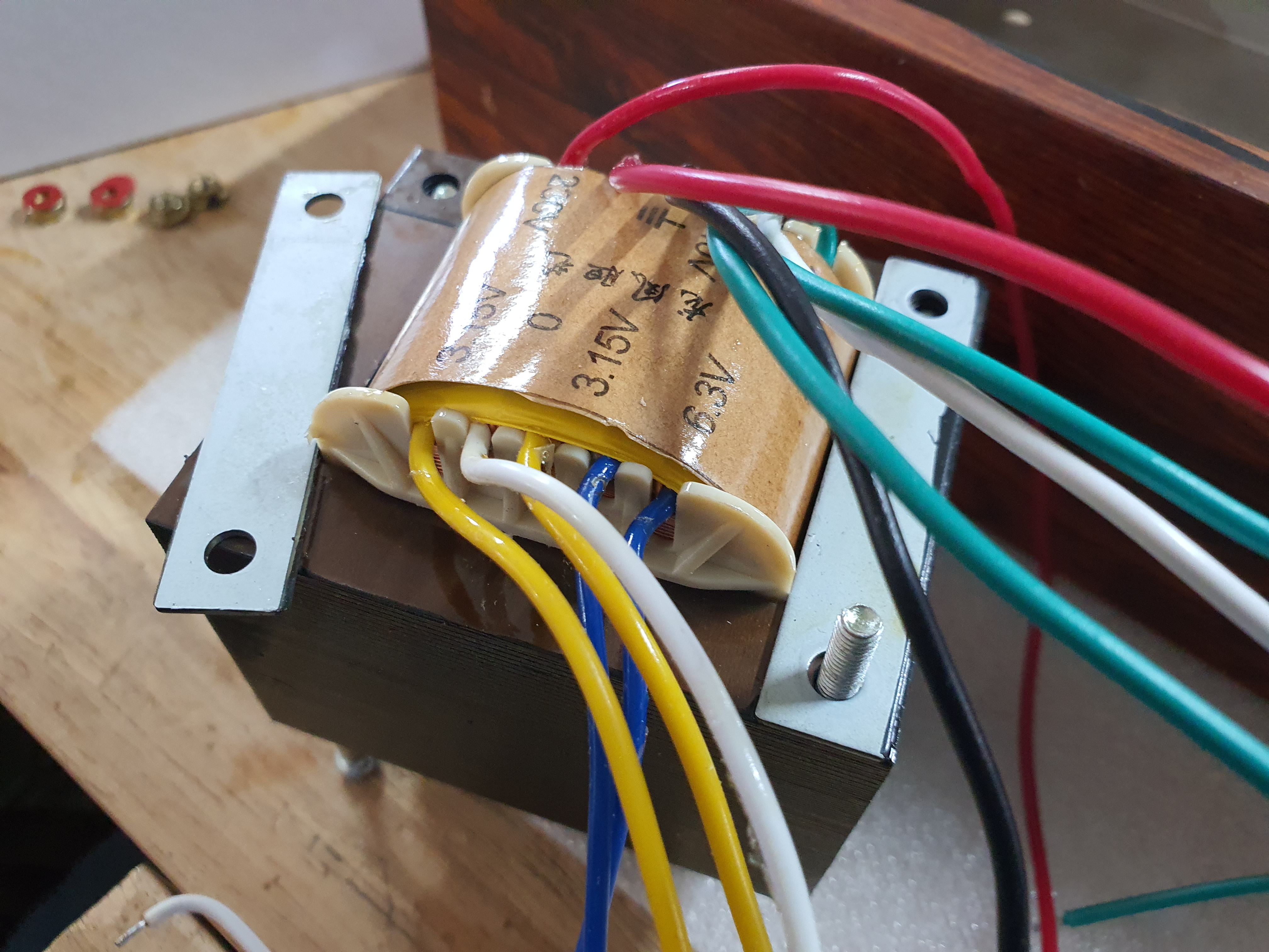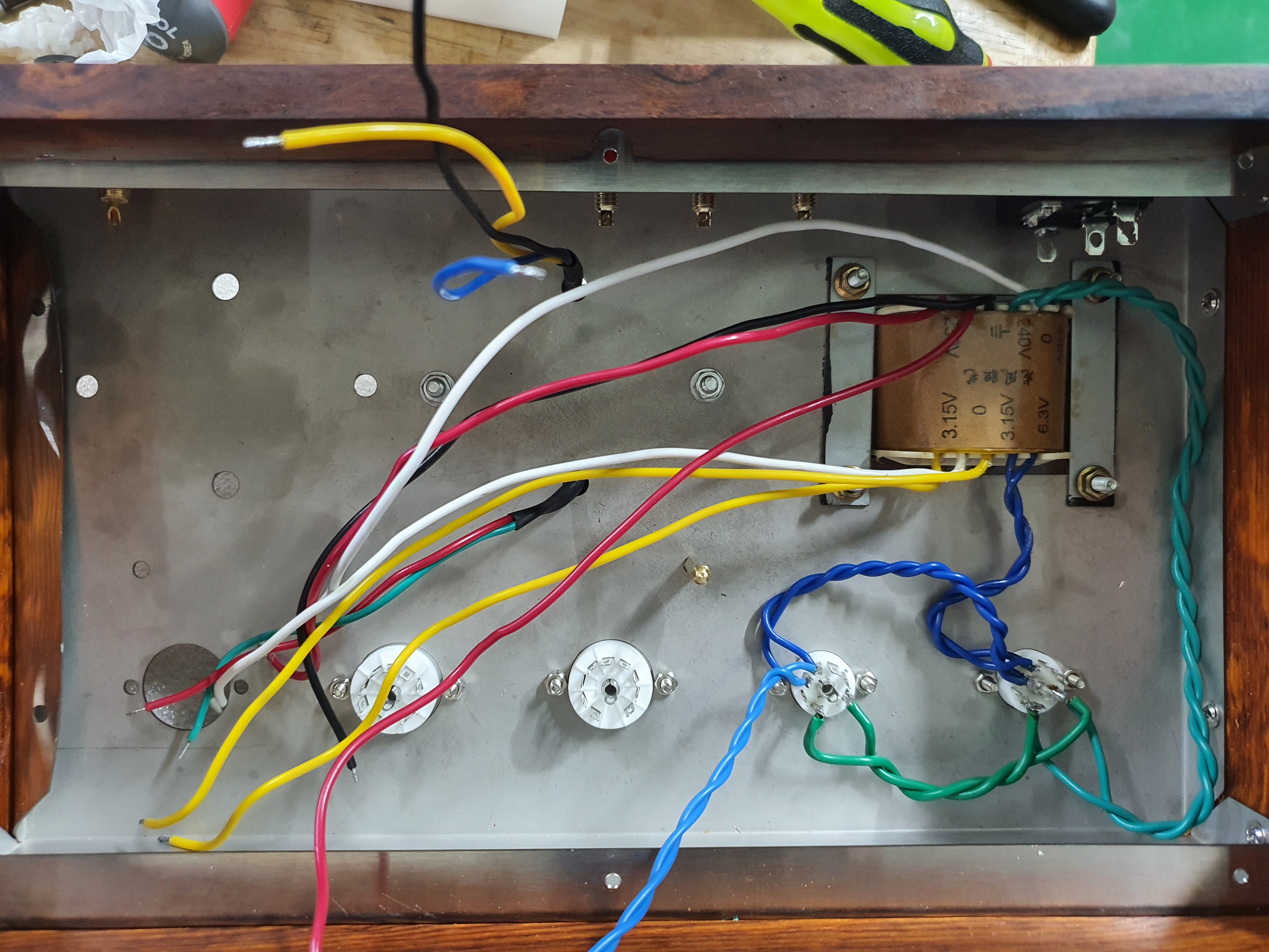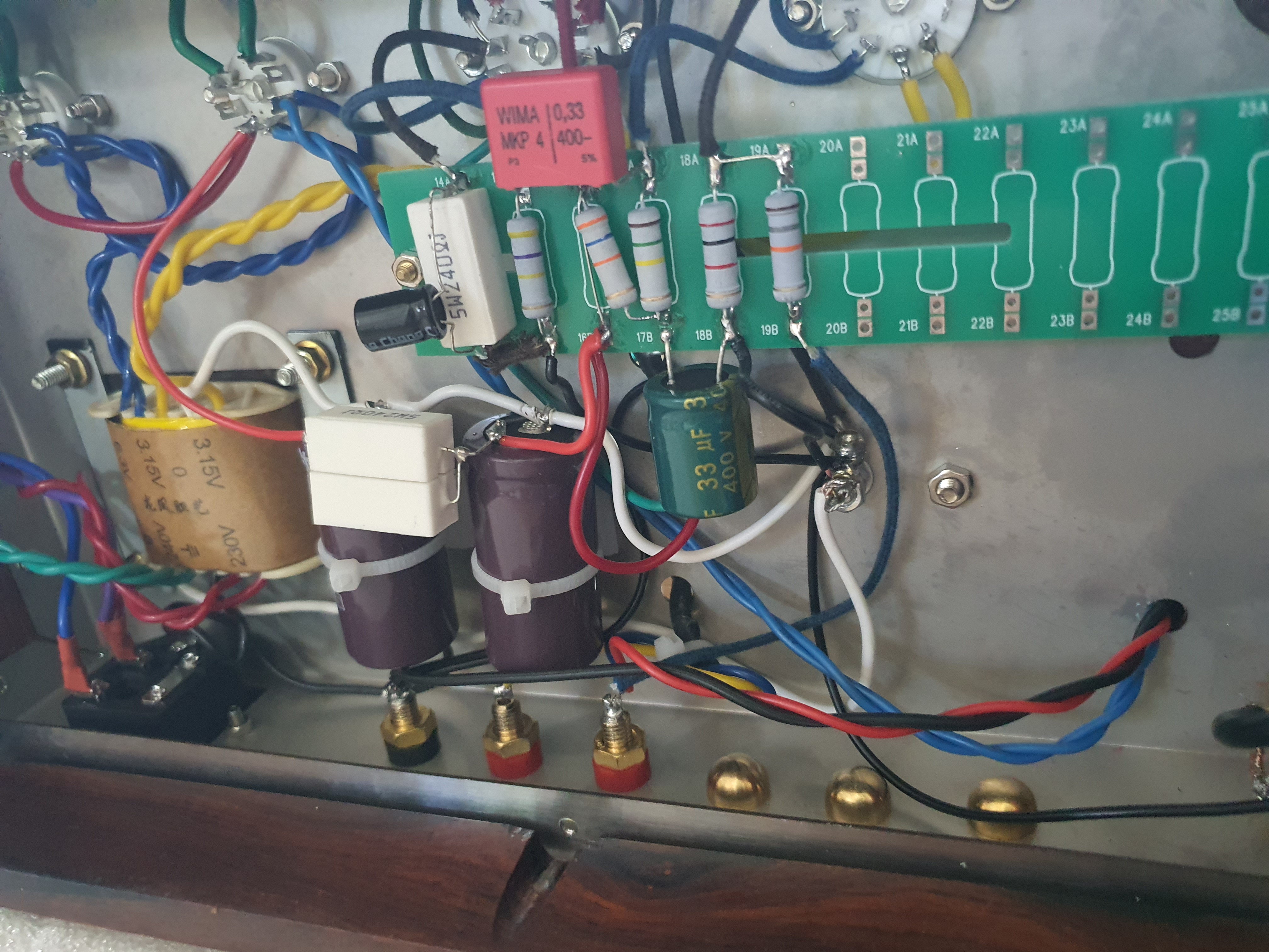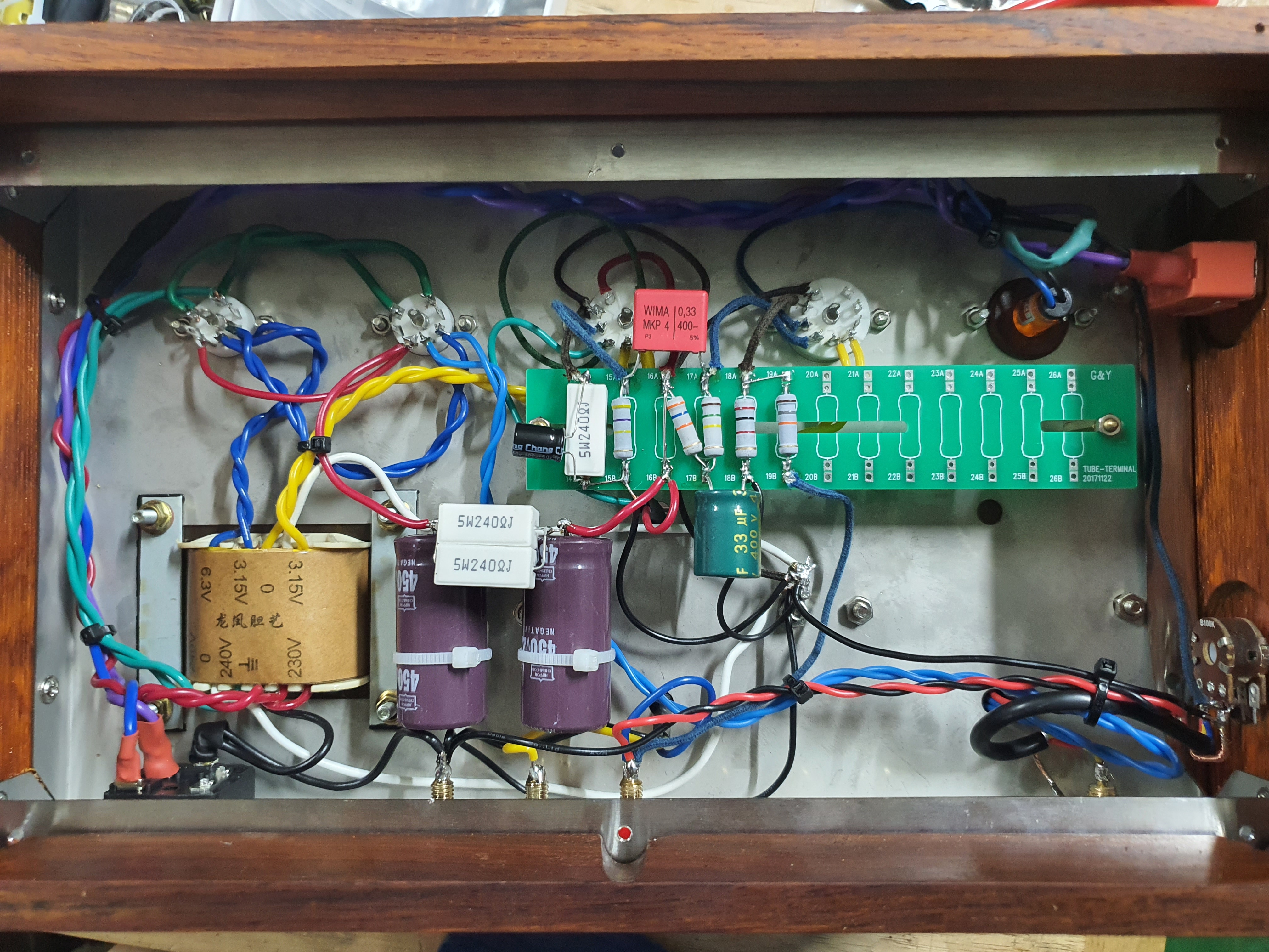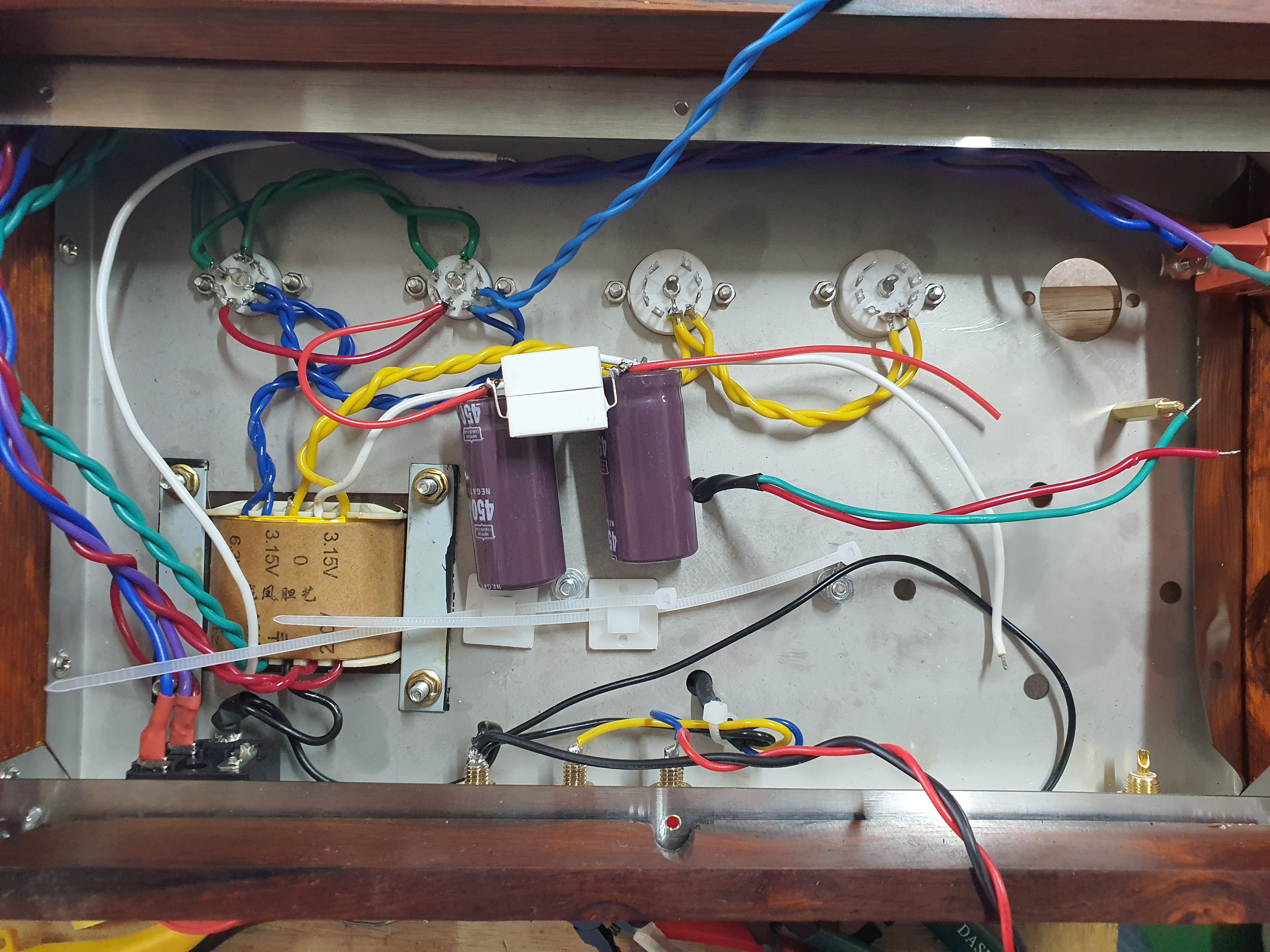 그럼데, 뒤쪽에 공간이 없더군요. 전원크랜스와 정류진공관등으로 내부에 단자들을 배치할 공간이 나오지 않습니다.