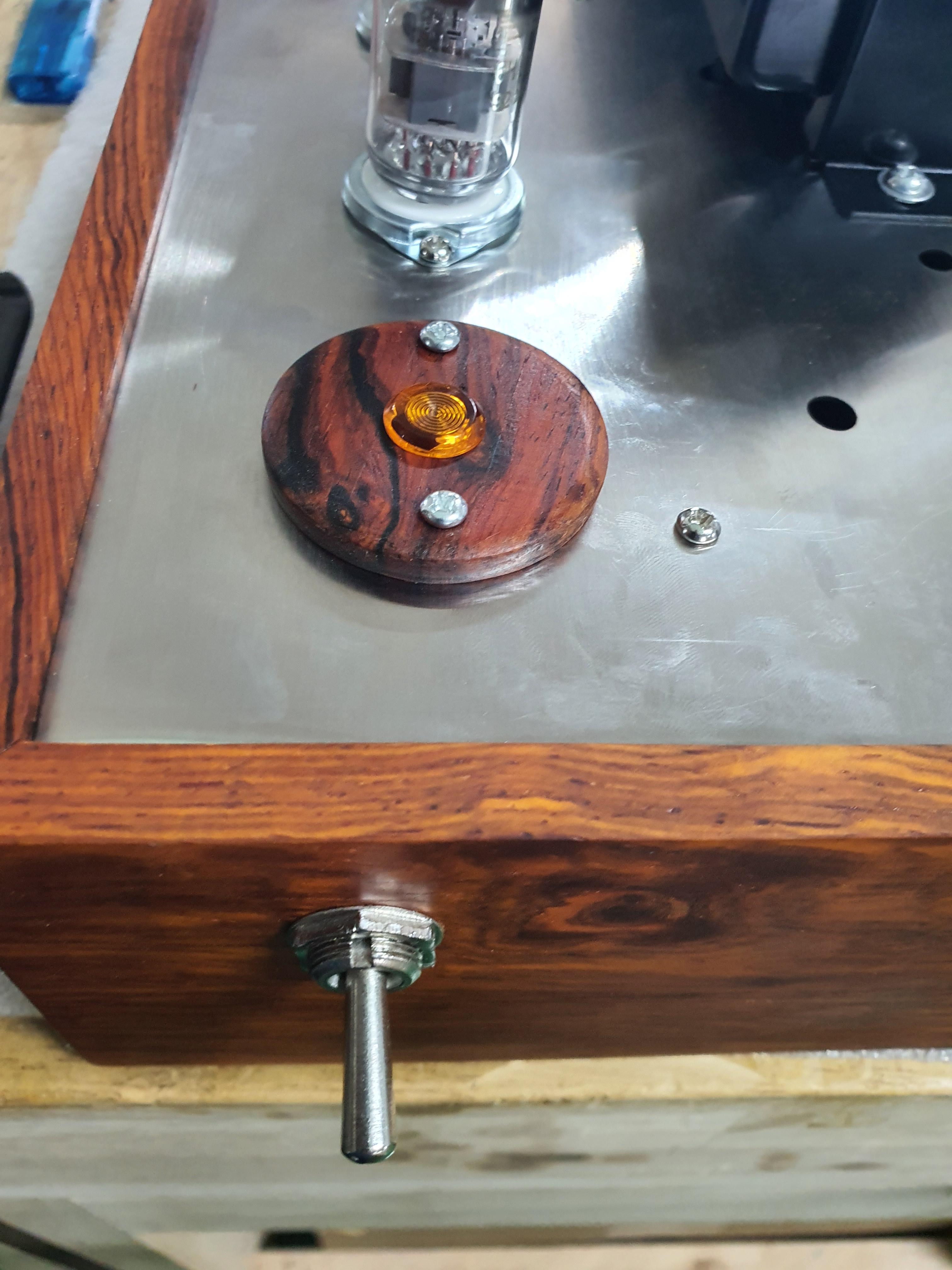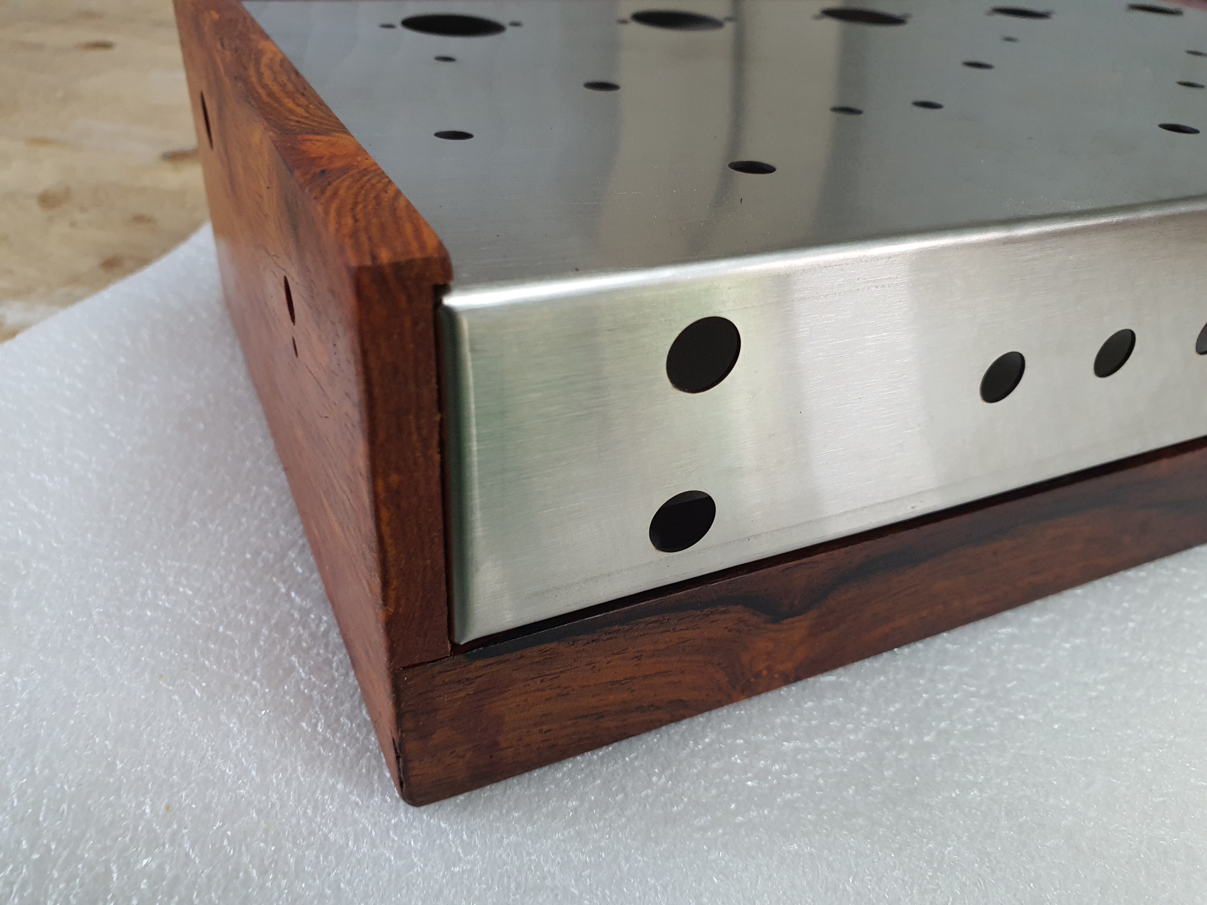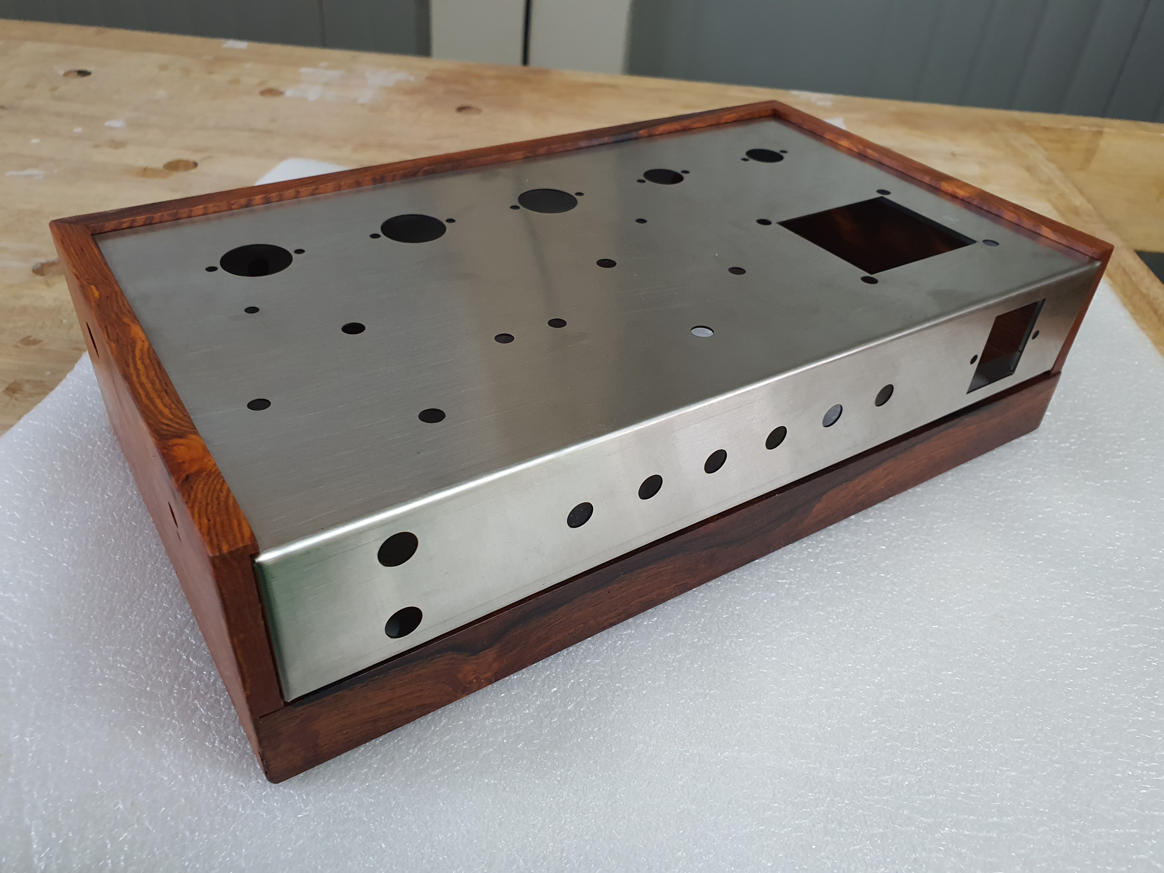 나무박스에 스테인리스 앰프 본체를 장착한 모습니다.