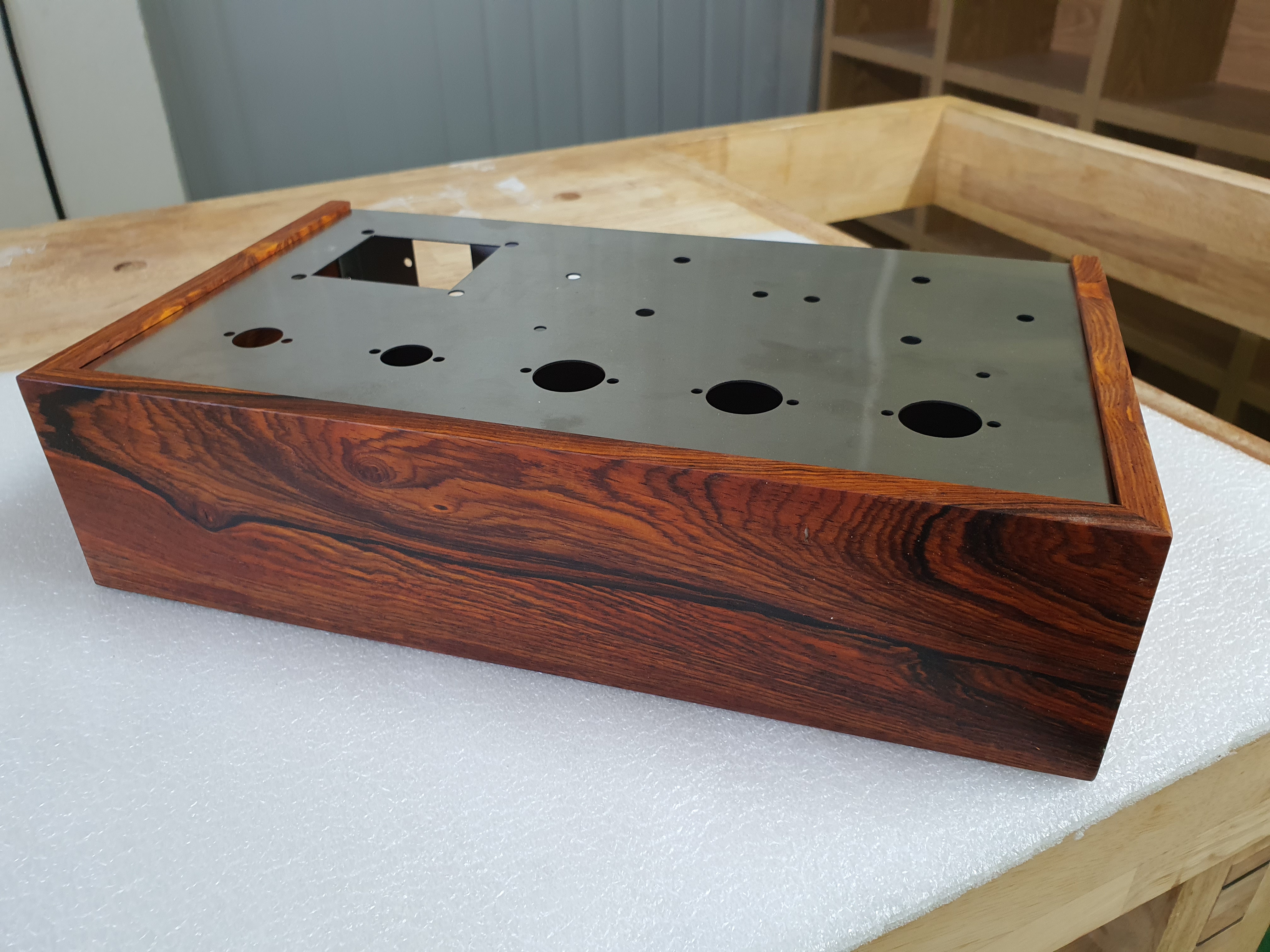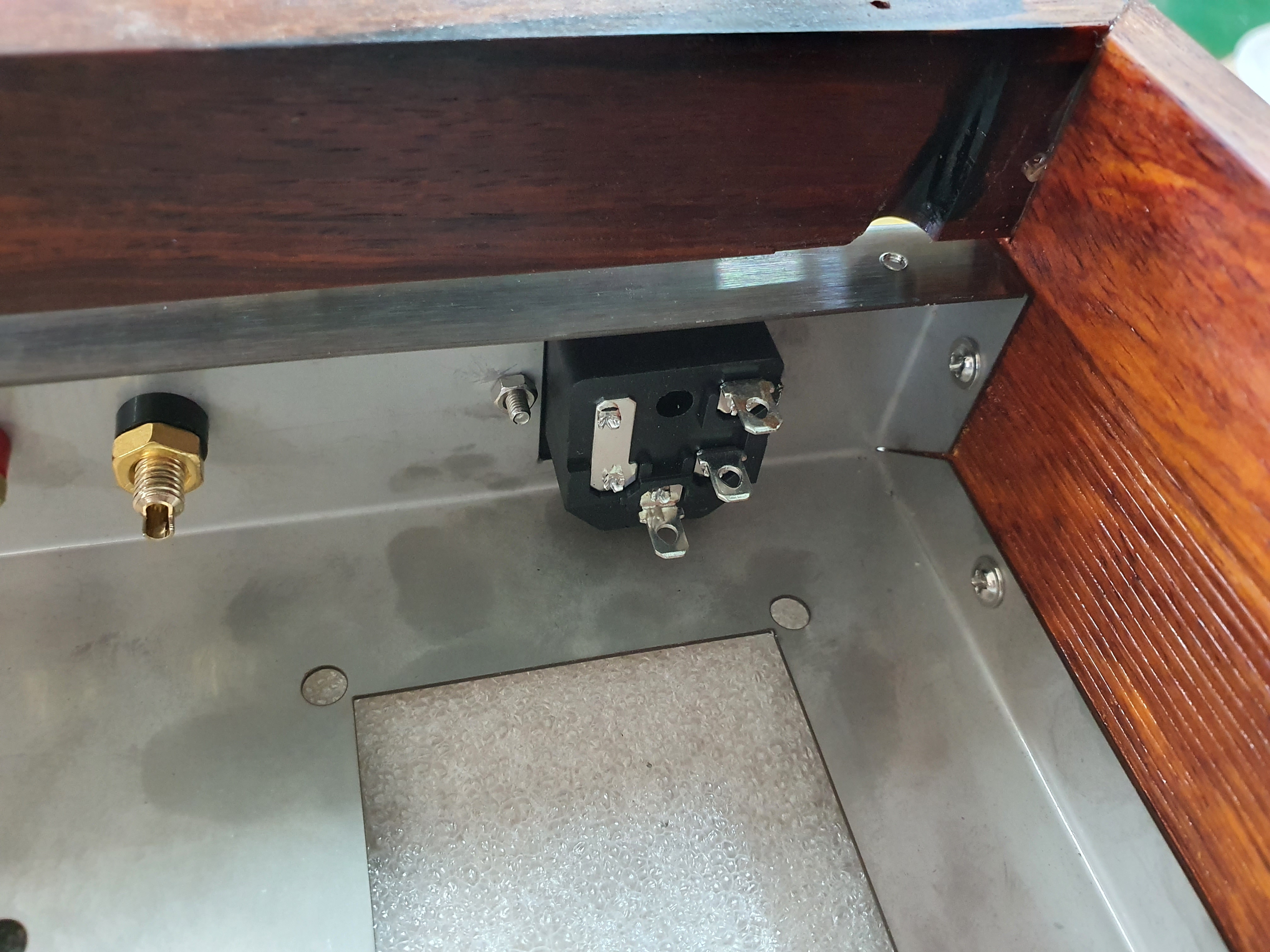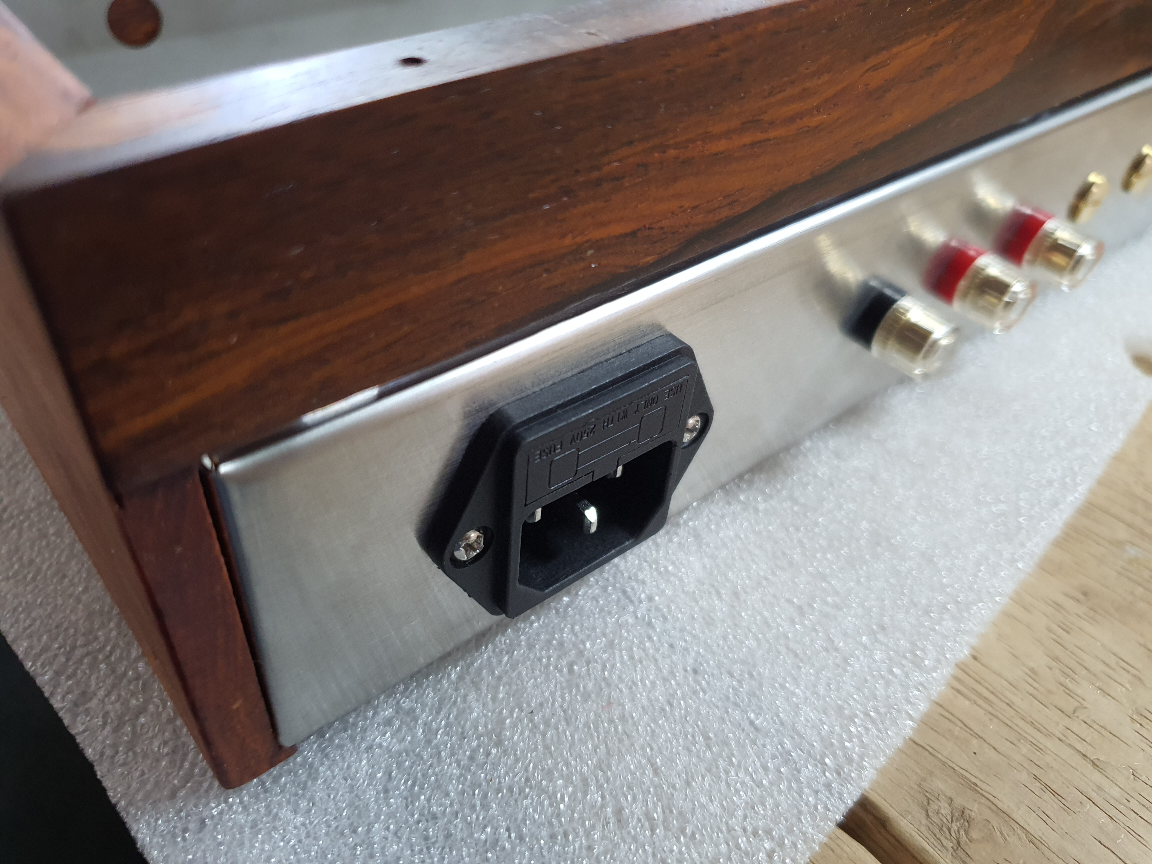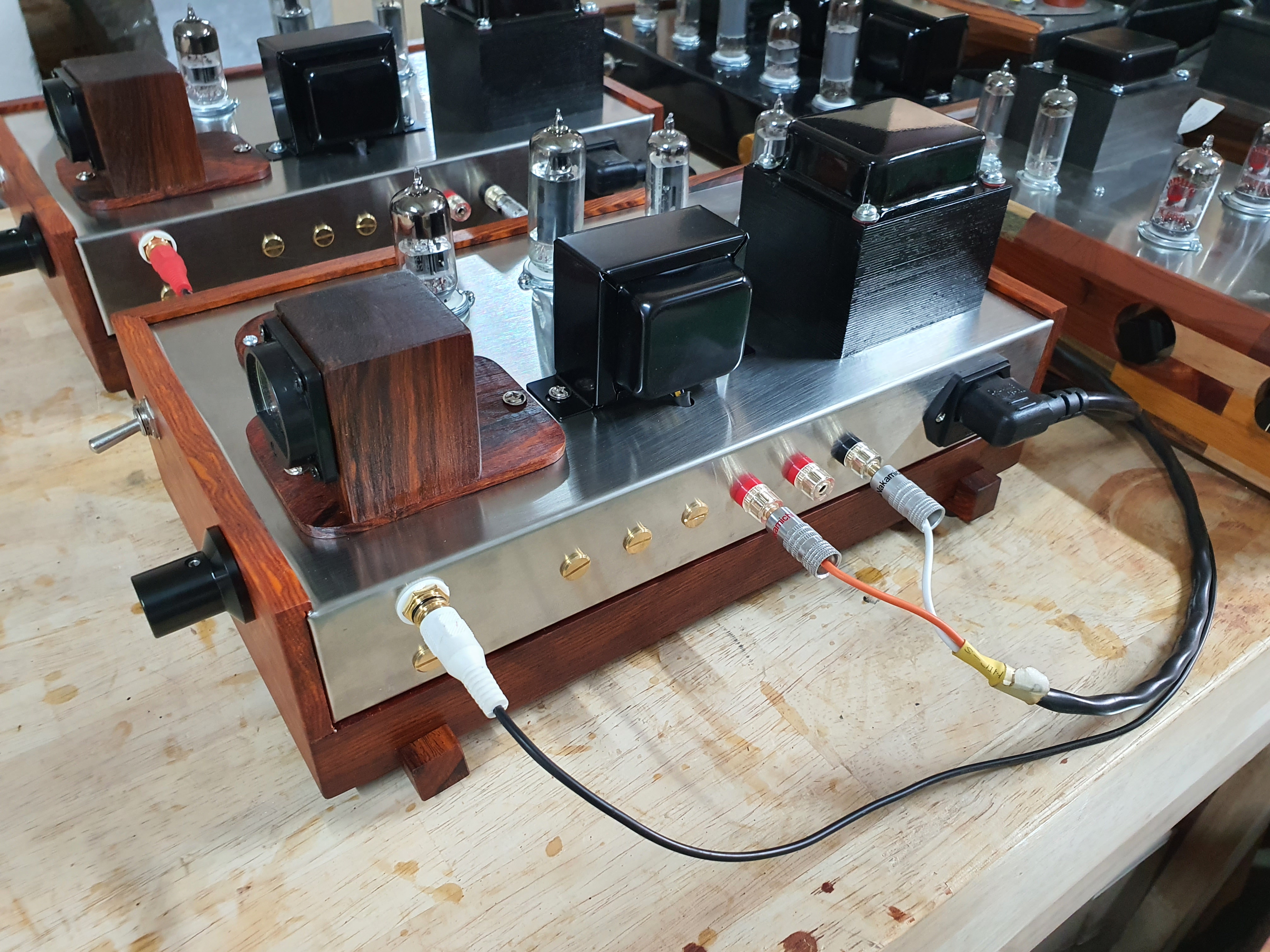 나무박스에 스테인리스 앰프 본체를 장착한 모습니다.