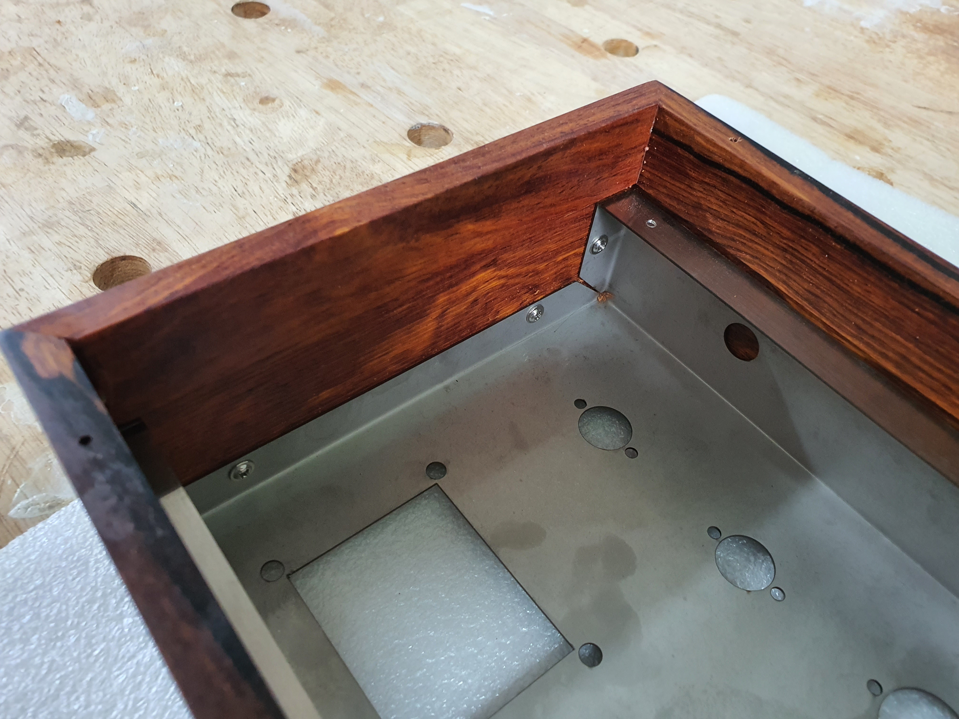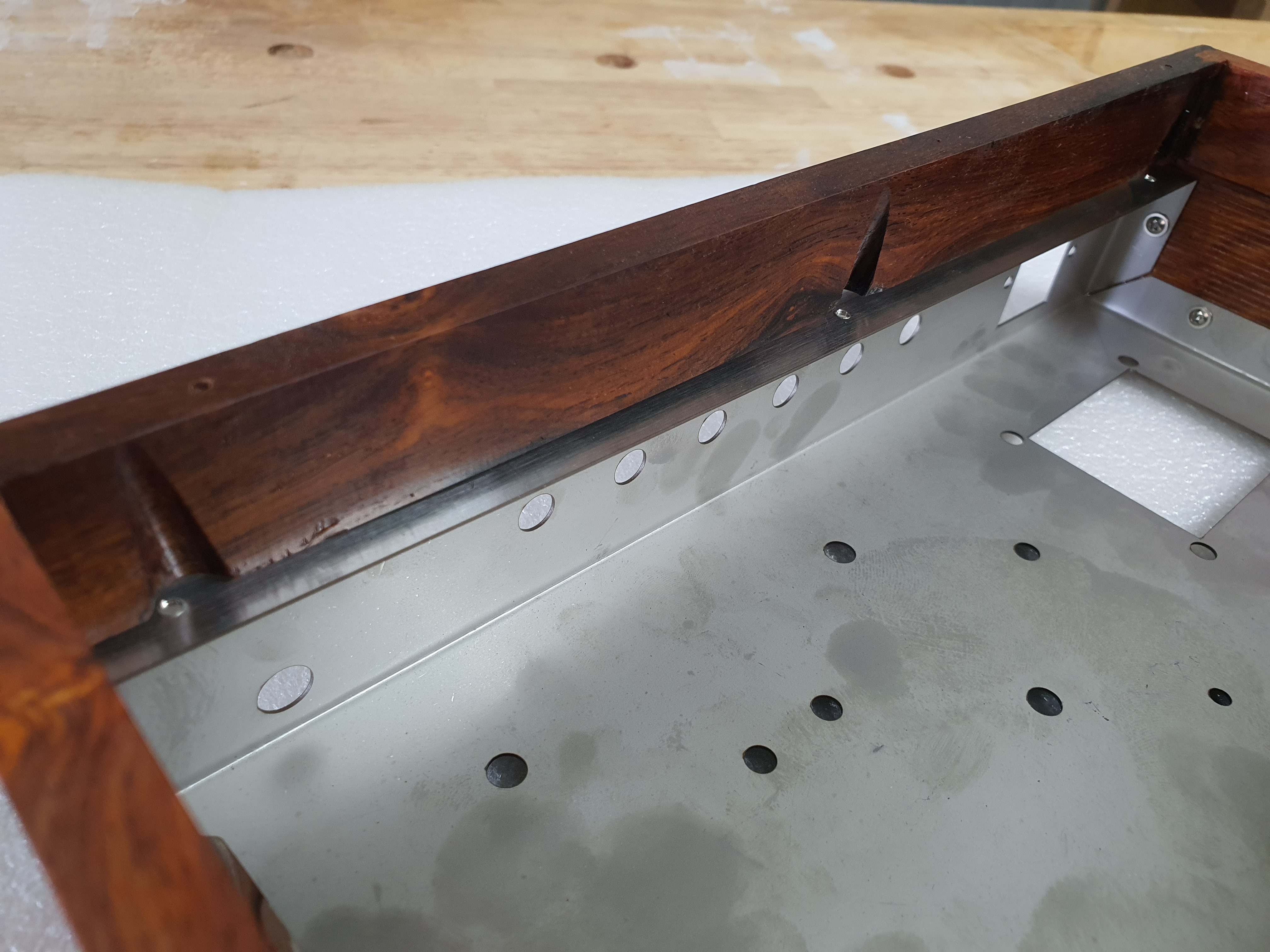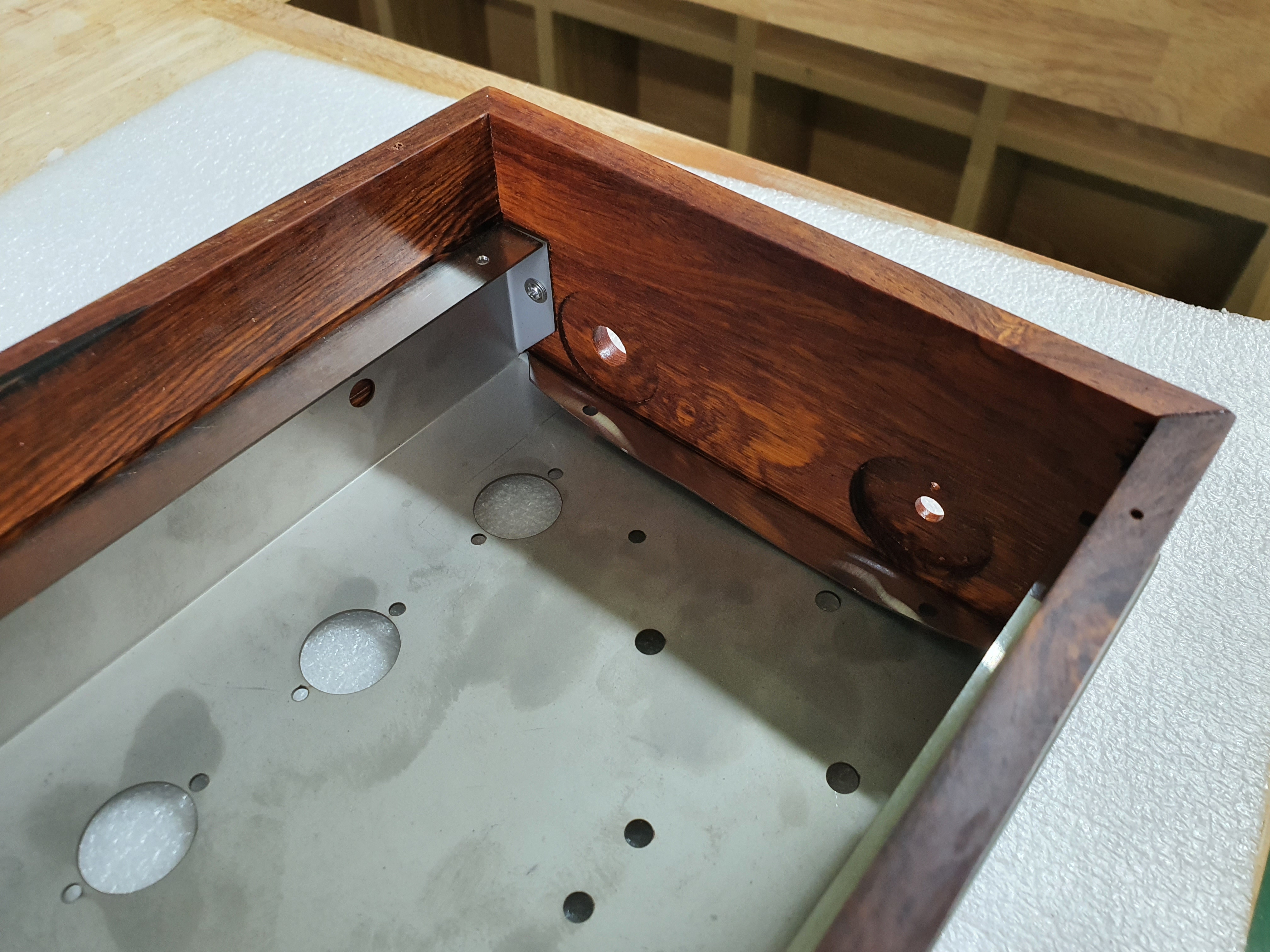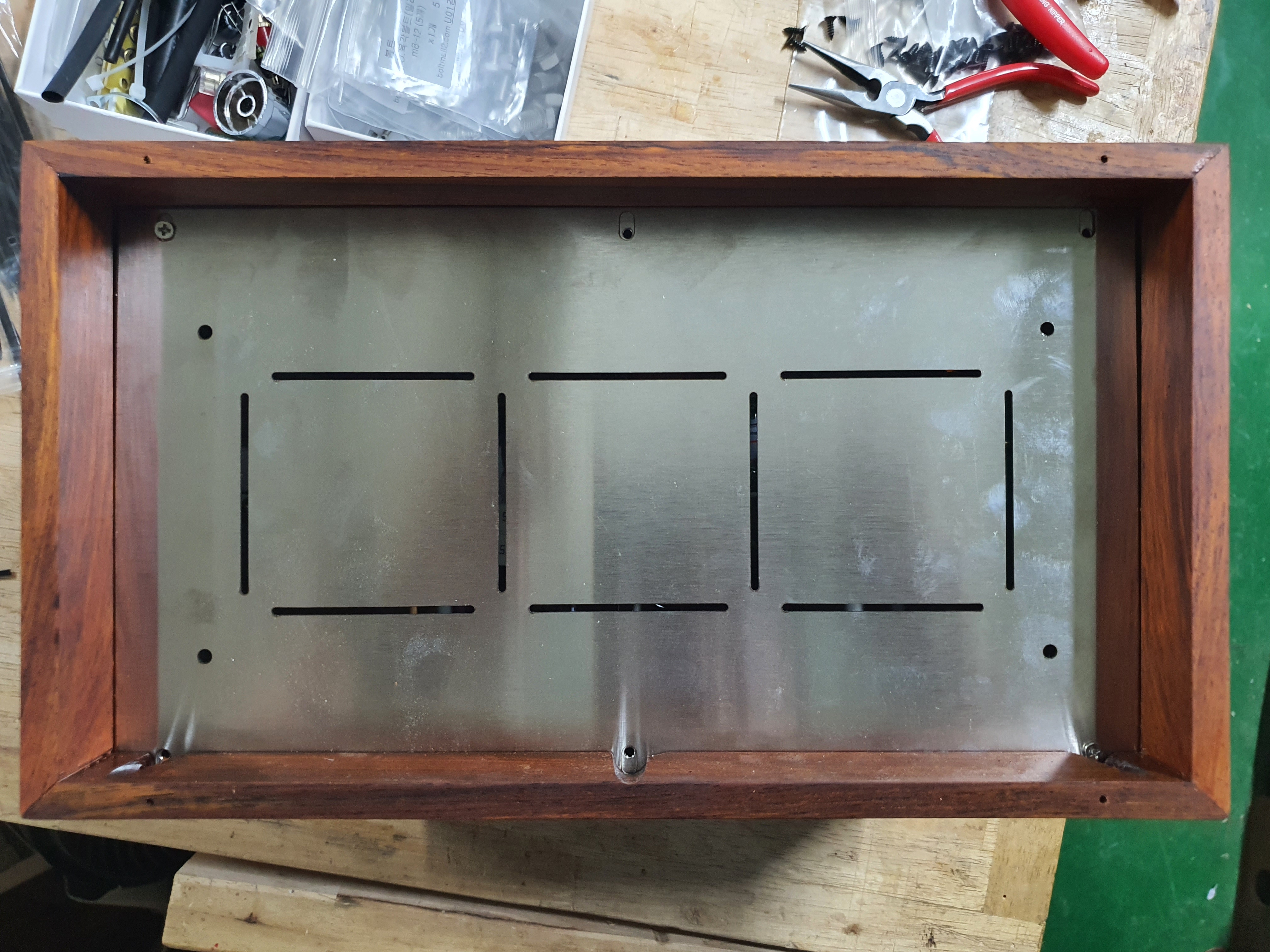안쪽에서 나사로 스테인리스와 나무케이스를 체결했습니다.