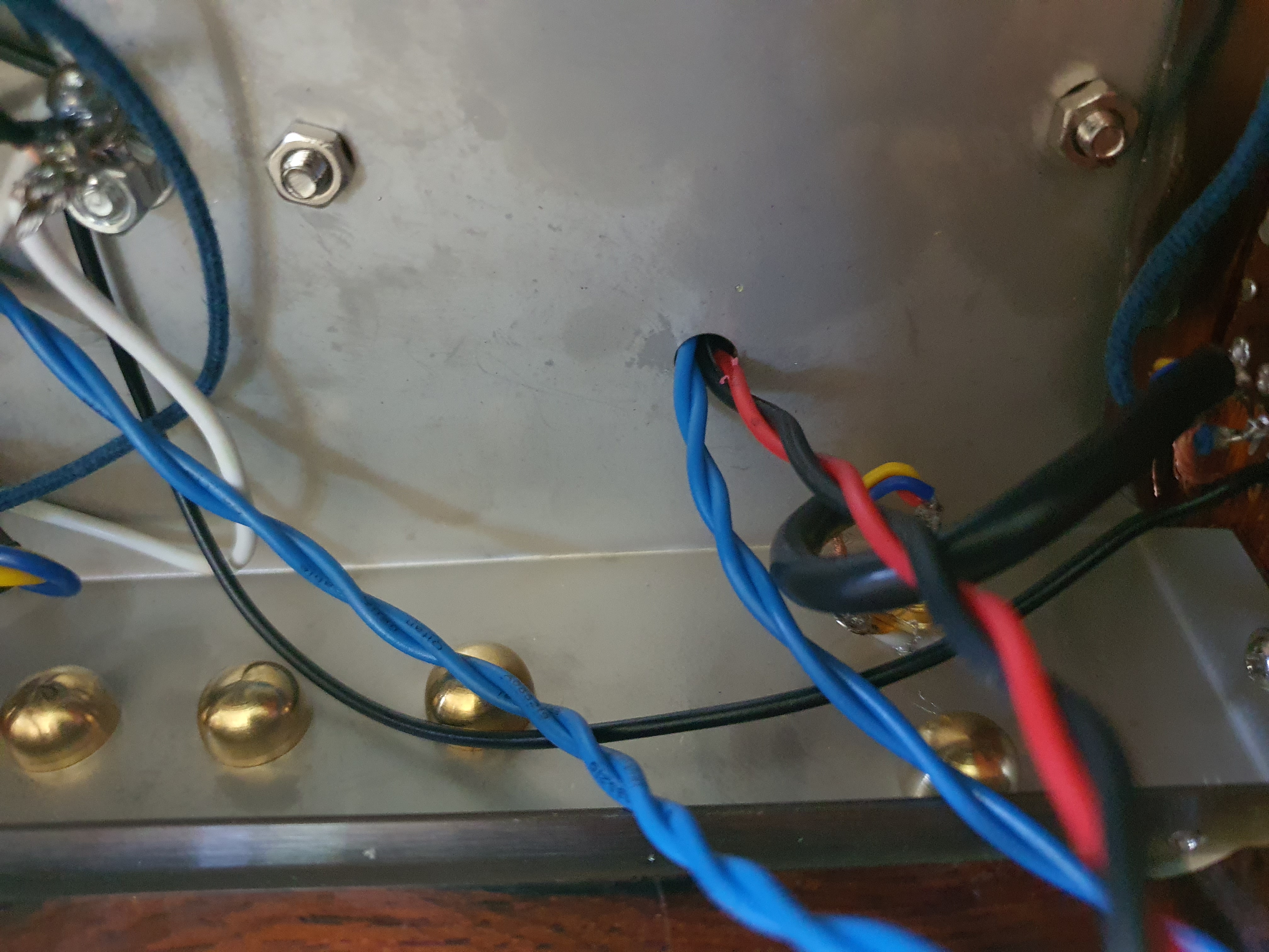 앰프를 테스트한 후 케이블들을 정리합니다.