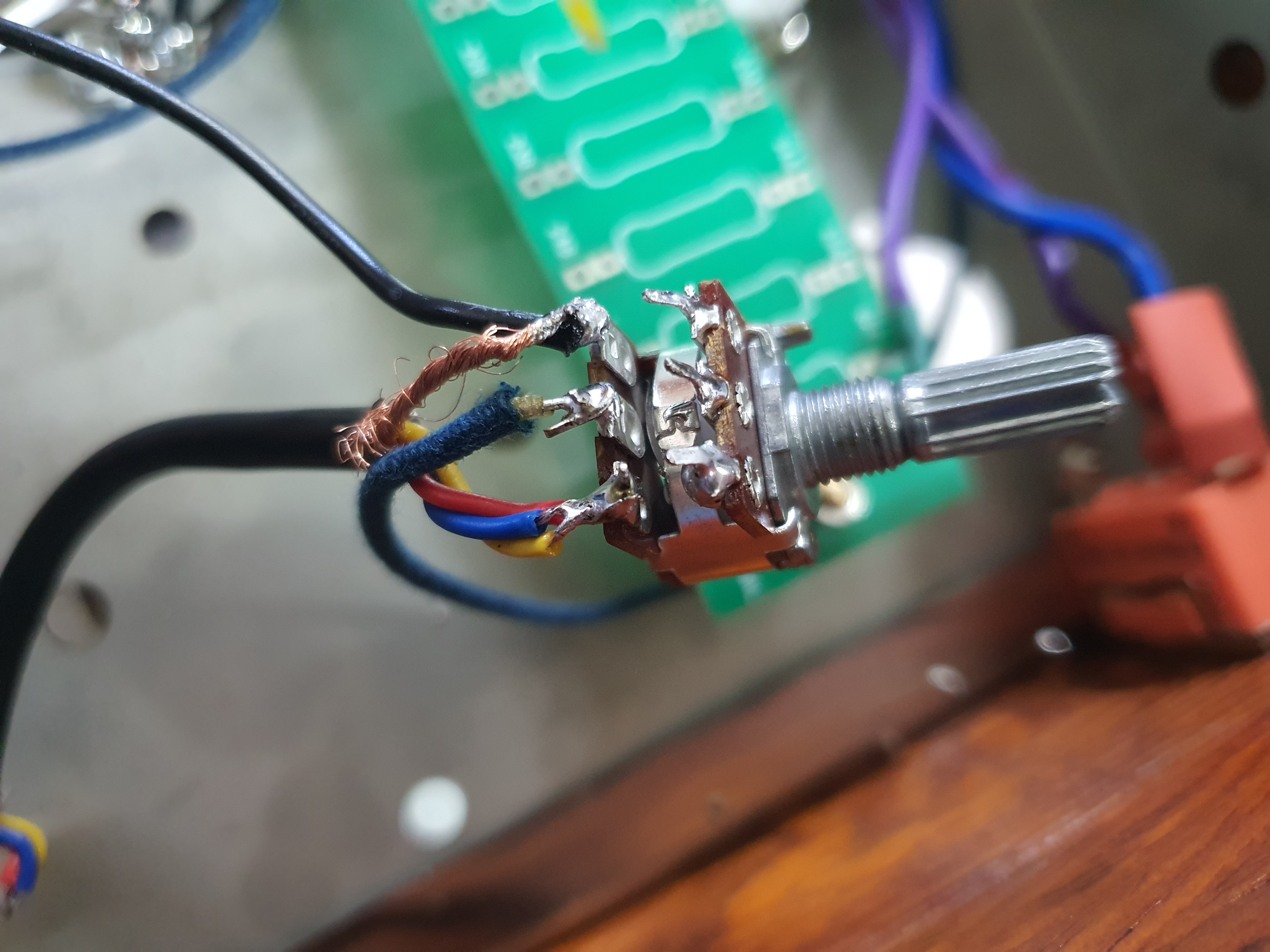 전원스위치 및 볼륨의 위치입니다. 스테인리스 케이스의 가드를 구부려서 공간이 만들어졌습니다.