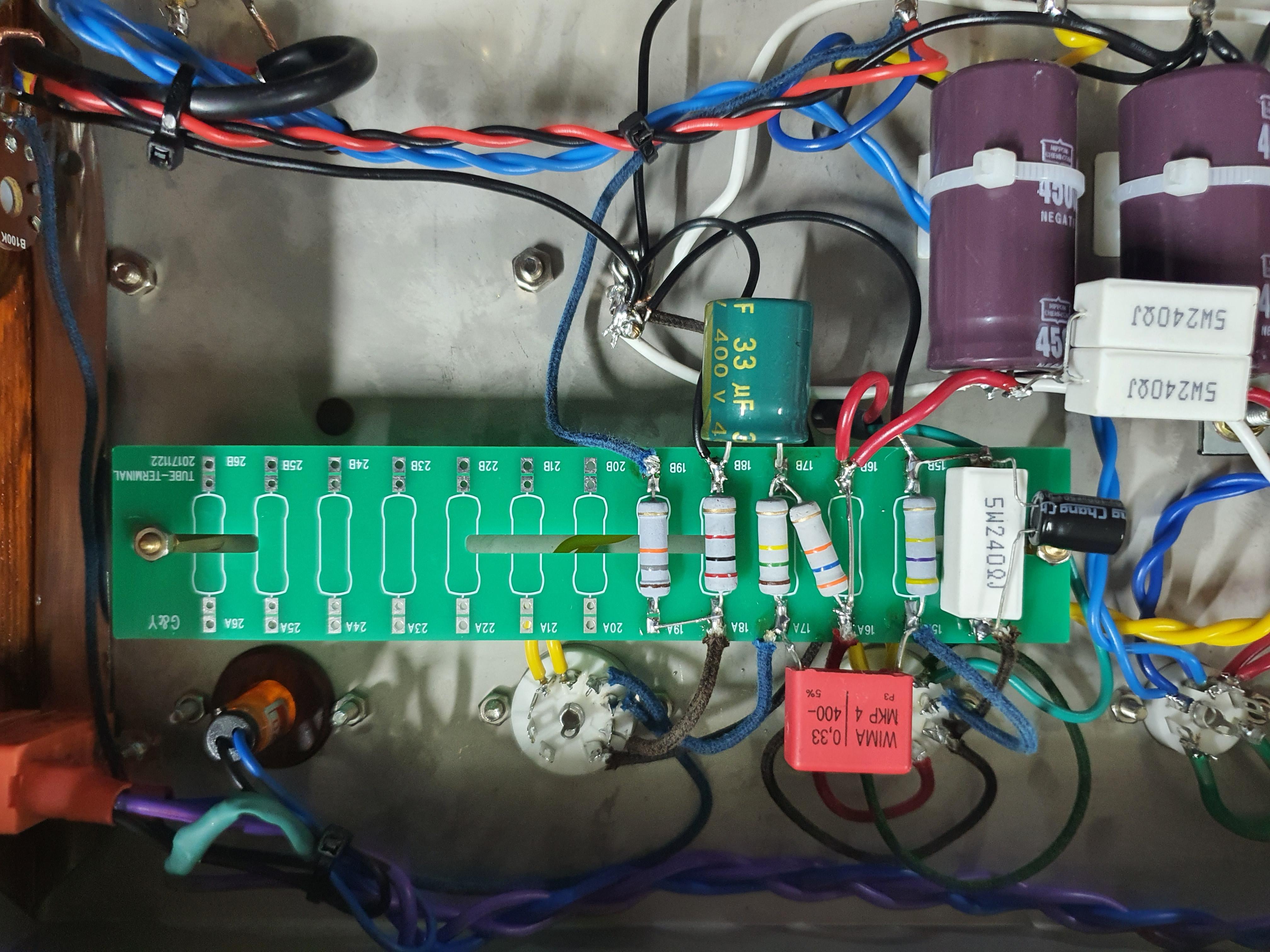 PCB 및 부품들 그리고 초단진공관, 출력진공관 입니다.