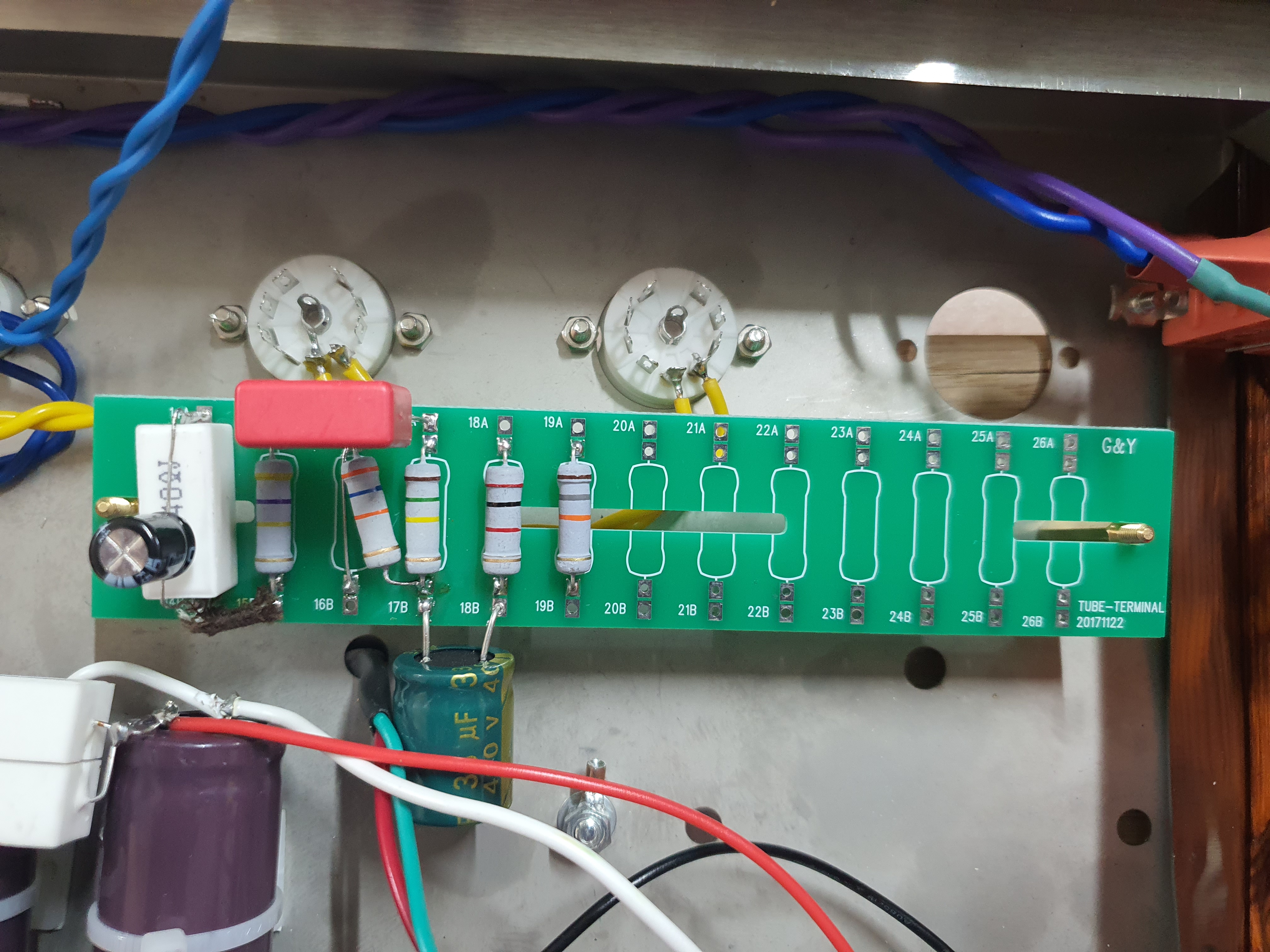 진공관소켓을 장착합니다. 6P1은 1개만 사용하기 때문에 1개 자리를 비웁니다.