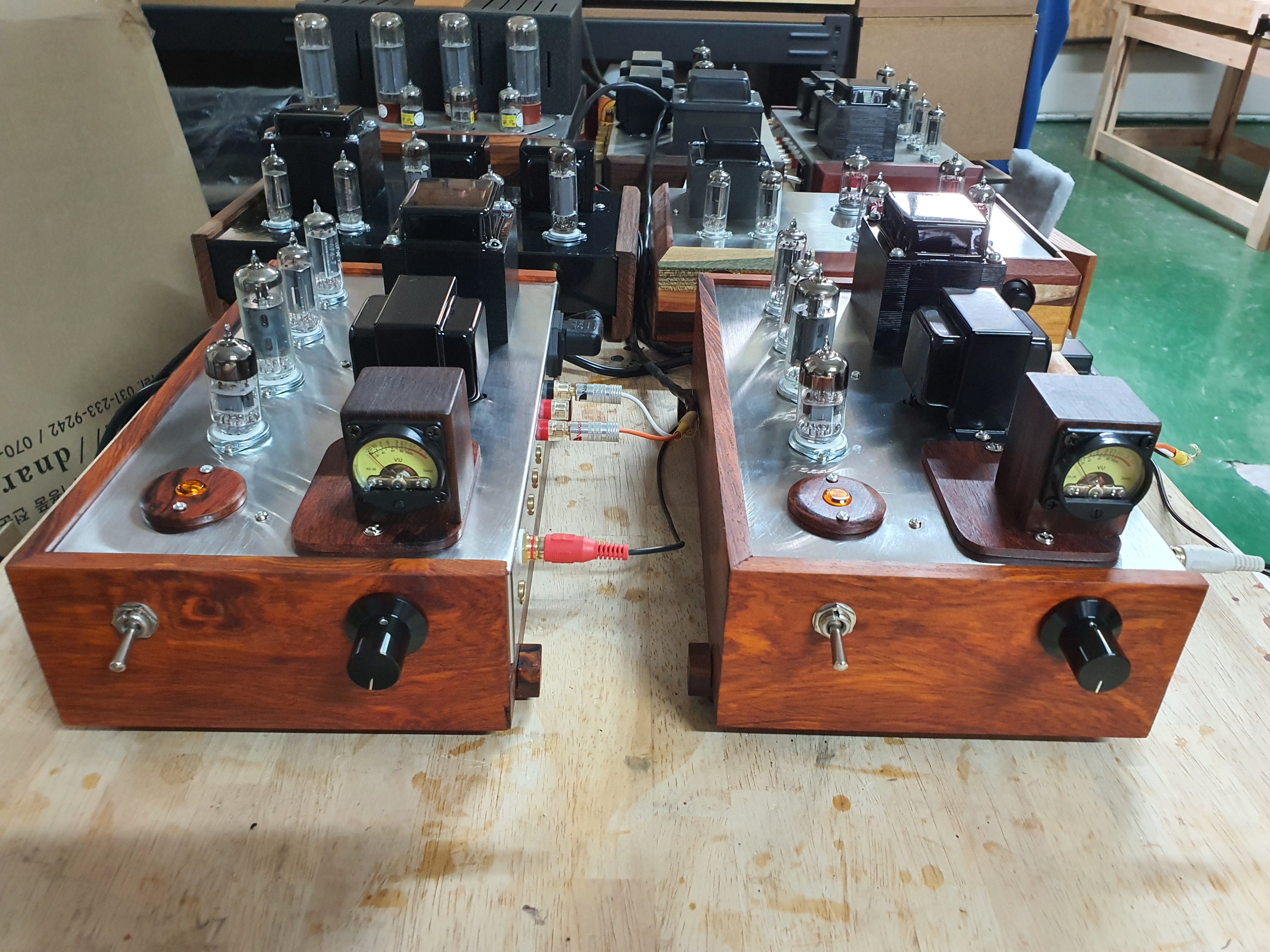 진공관앰프 2개가 도착 작업을 시작했습니다.