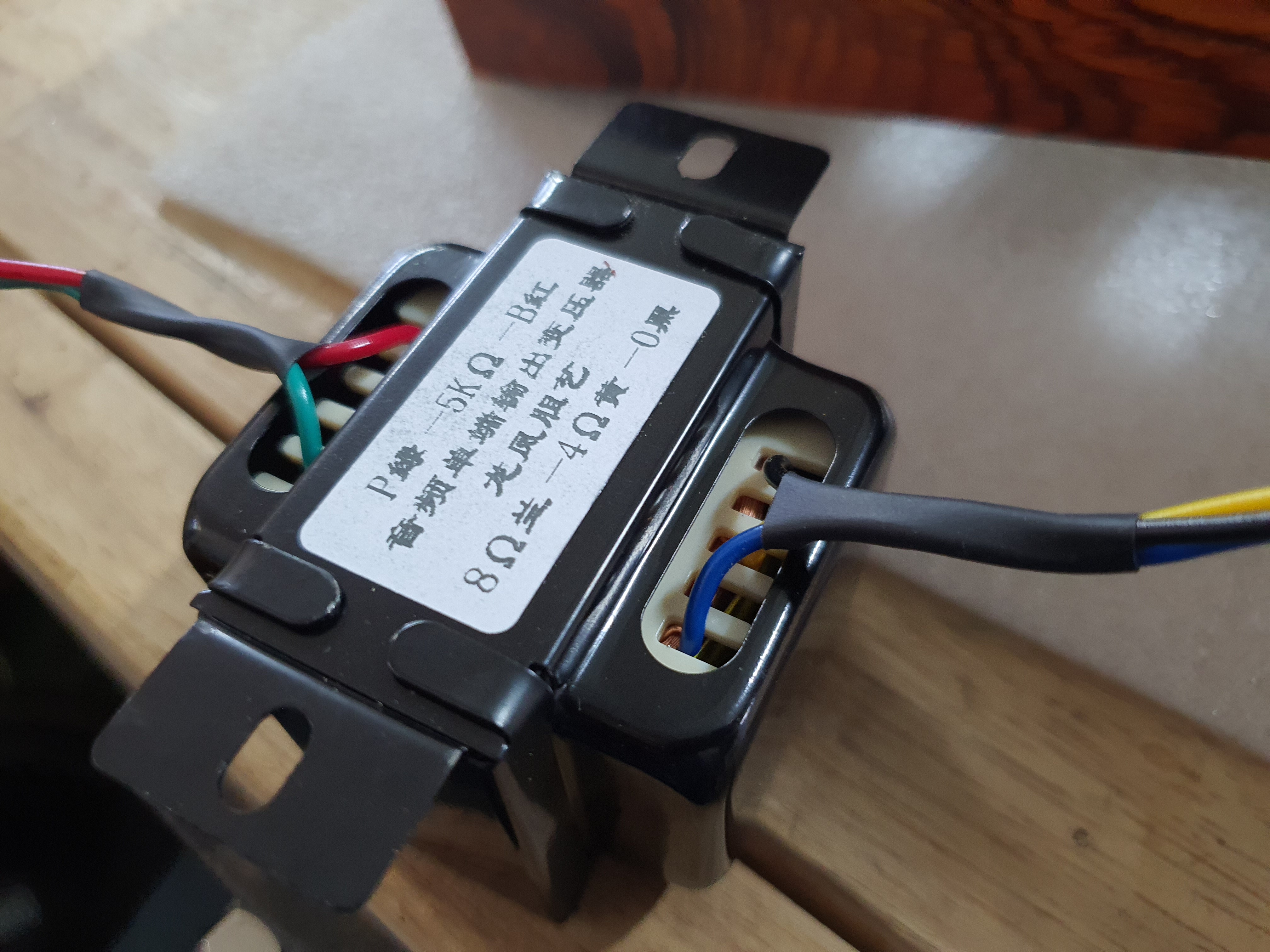 출력트랜스 입니다. 스테인리스 케이스의 날카로운 구멍으로 선들이 통과하기 때문에 조금 더 안전을 위해서 열수축튜브로 감싸 줍니다. 출력트랜스가 하나만 사용하기 때문에 1개만 장착합니다.