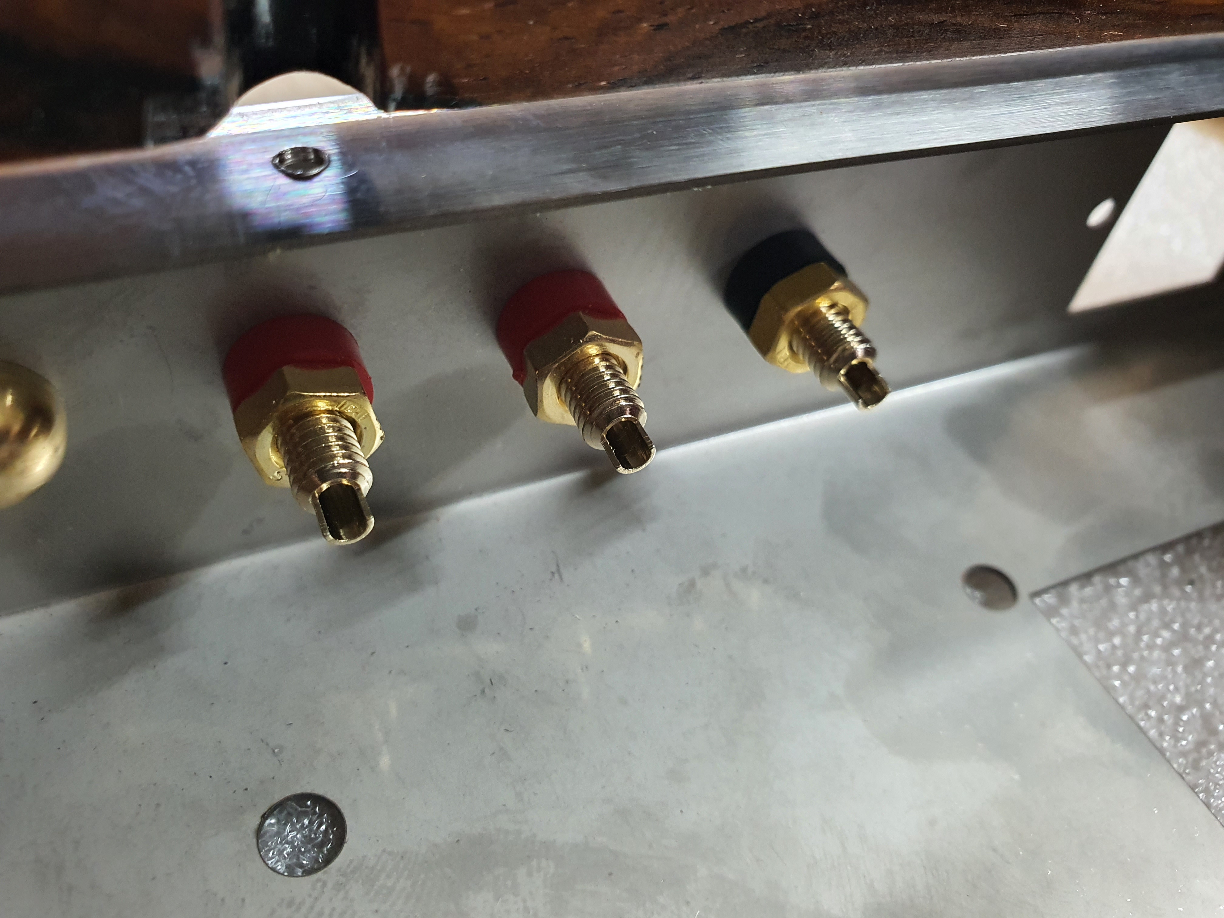 그래서 그런 단자들을 지금과 같은 위치 즉 새로운 앰프에서는 옆면에 나오도록 했습니다.