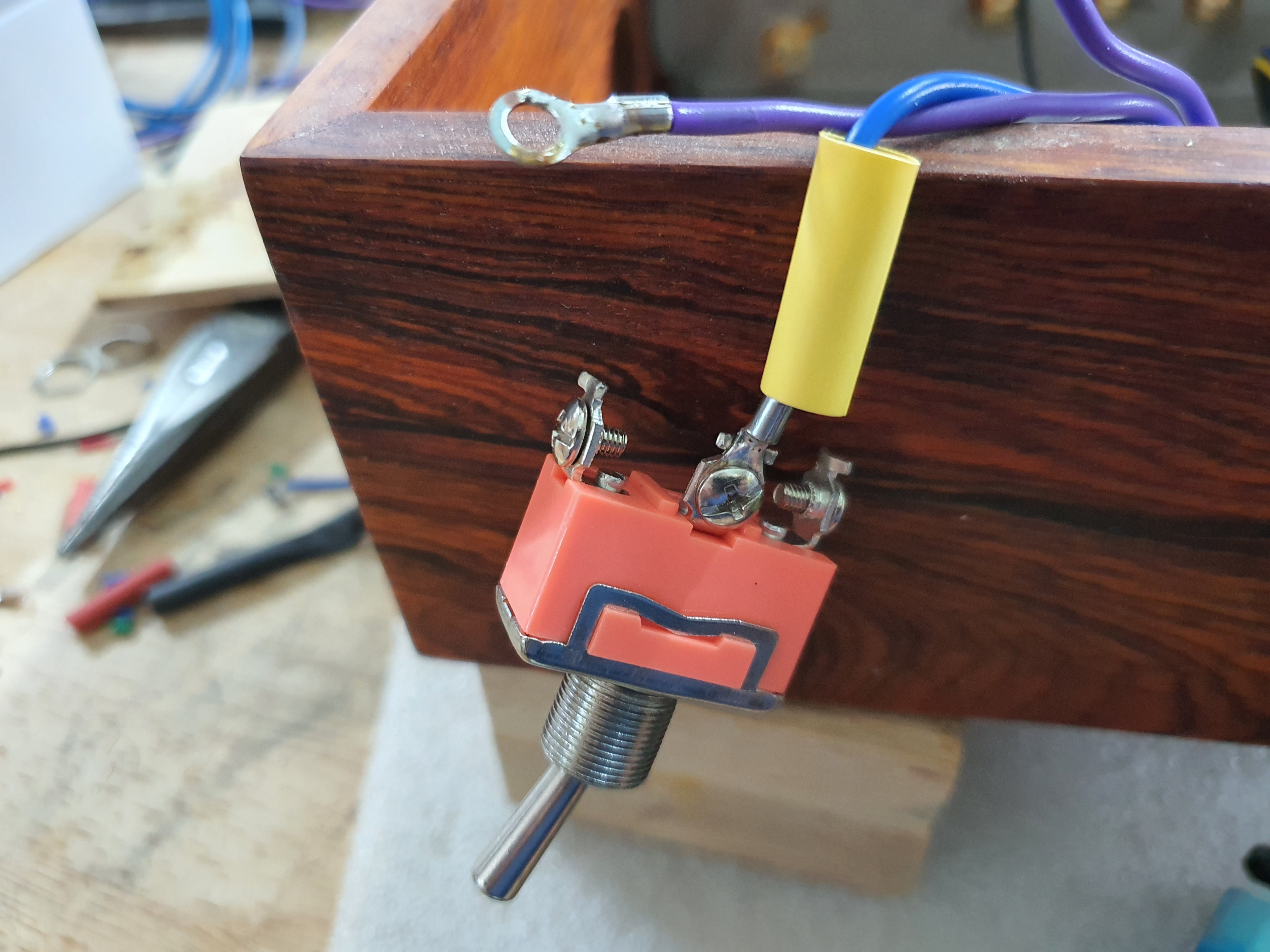 전원스위치는 오링 형태의 단자를 사용해서 먼저 선과 납땜 후 스위치에 나사로 연결합니다.