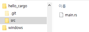 'src' 폴더내에 main.rs 파일이 있게 됩니다.