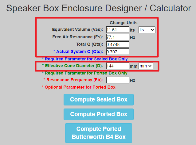 Speaker Box Volume Calculator / Designer (diyaudioandvideo.com)
