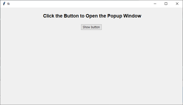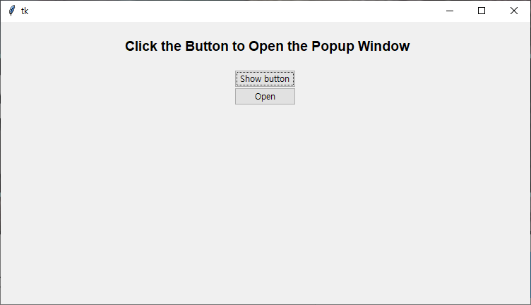 Label(win, text=" Click the Button to Open the Popup Window", font=('Helvetica 14 bold')).pack(pady=20)