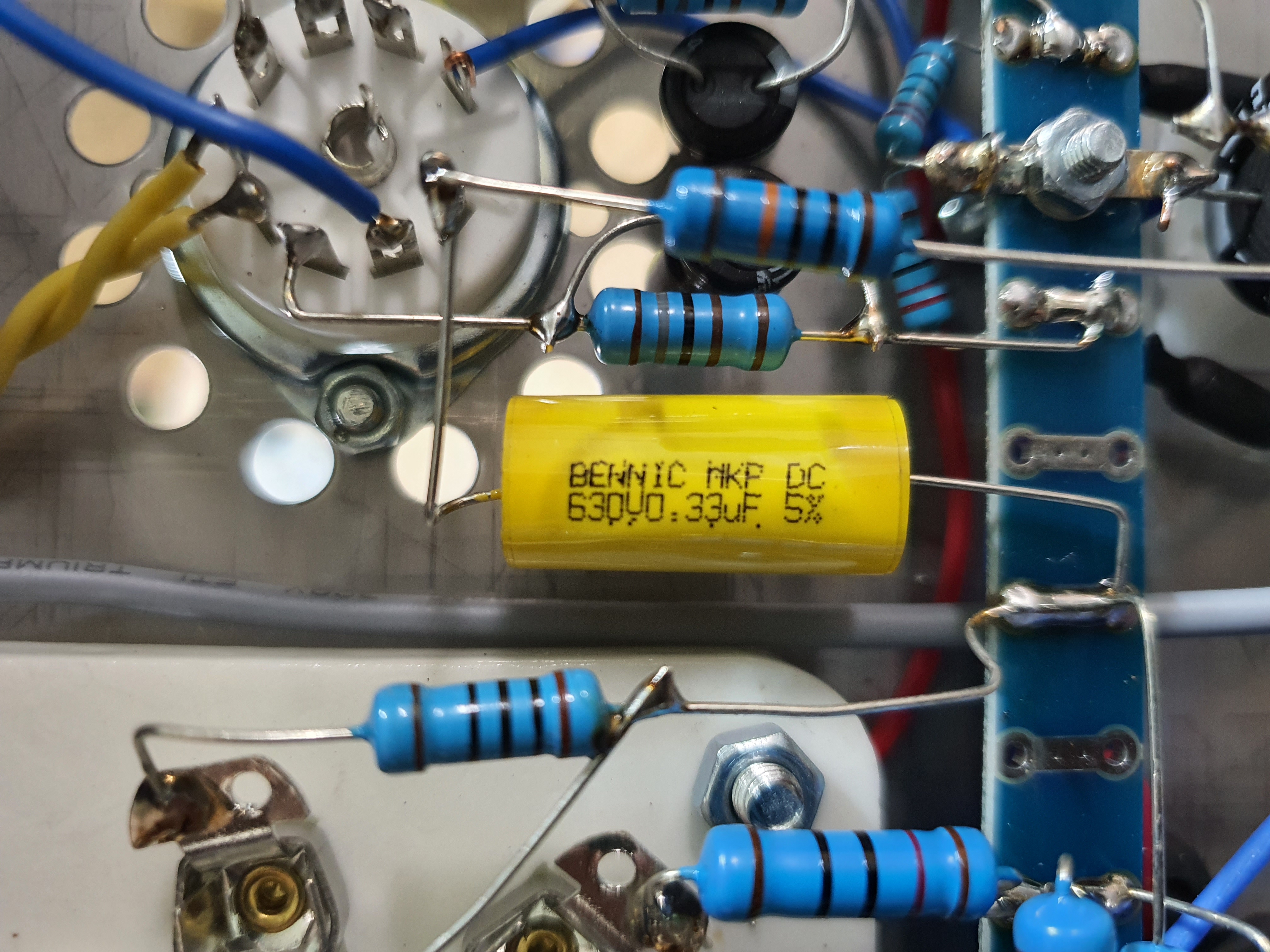 그런데, 소리가 좀 답답합니다. 확인해 보니 커플링콘덴서가 0.33uf짜리가 연결되어 있습니다.