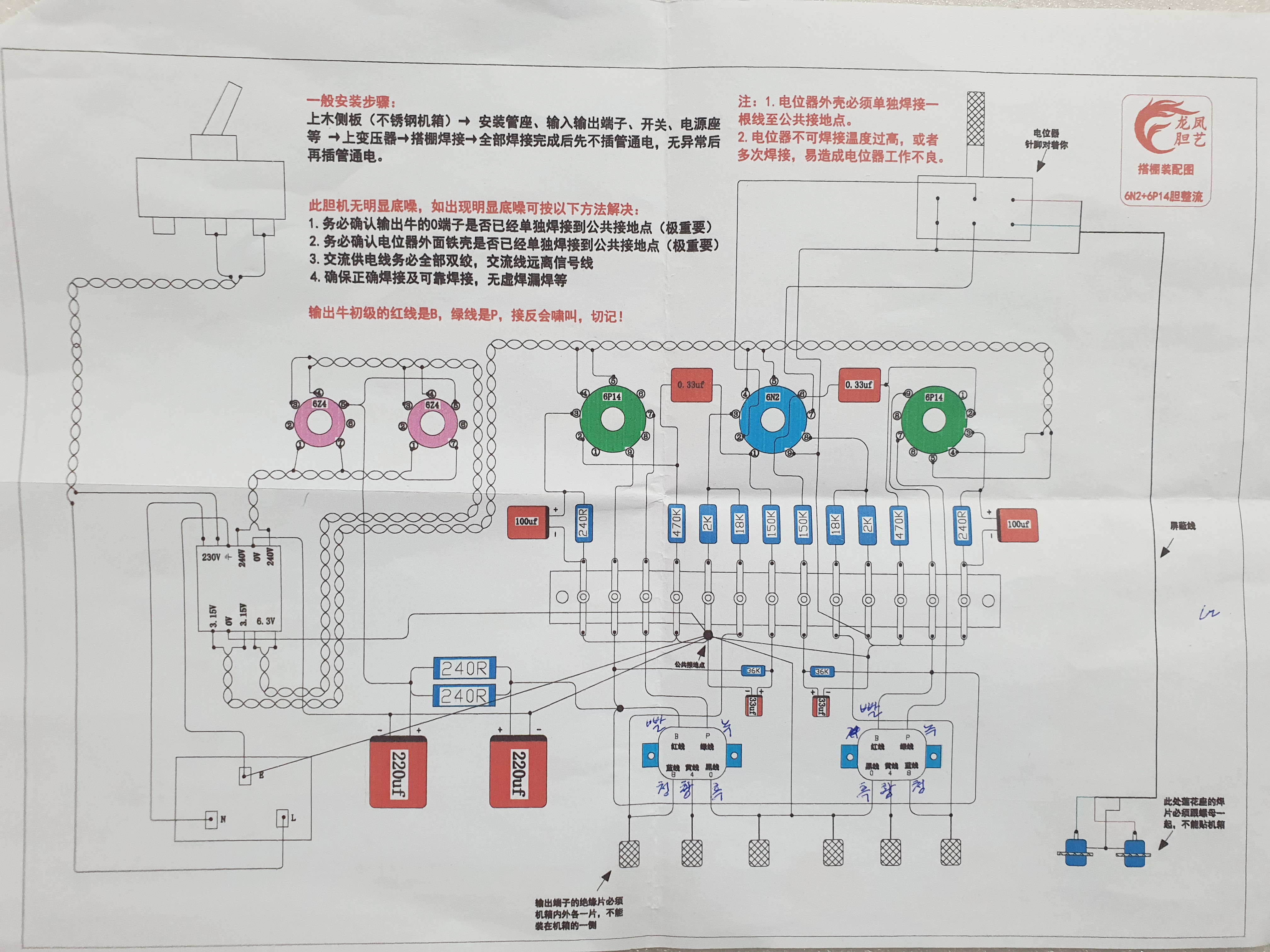 회로를 보면 이전에 조립 해봤던 '6n2, 6P1 진공관앰프' 키트와 회로와 저항값, 콘덴서값이 똑같은것 같네요.