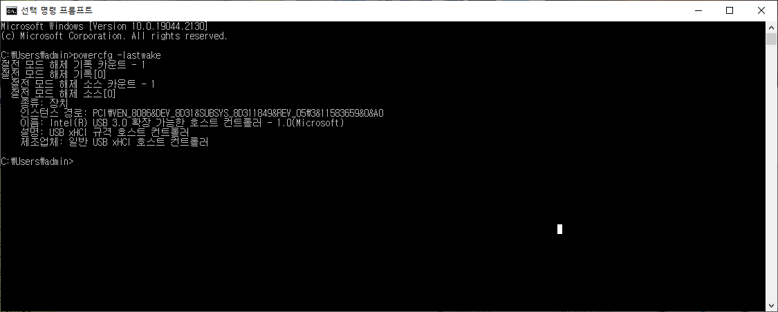 마지막으로 절전모드를 해제한 대상을 찾을 수 있습니다.