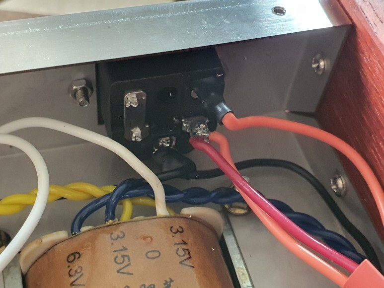 새로 구입한 스위치가 뒤쪽 즉 케이스 내로 들어오는 부피가 크기때문에 전원진공관 소켓과 다을 수도 있습니다.
