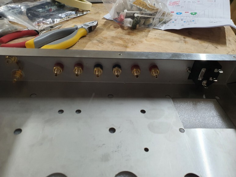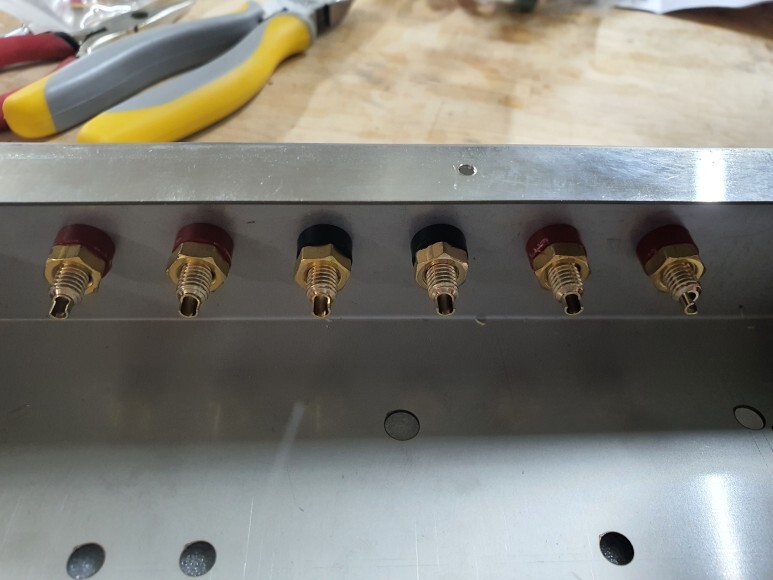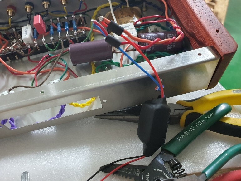 러그핀 모듈을 미리 만들어서 출력트랜스 나사에 같이 끼웠습니다.