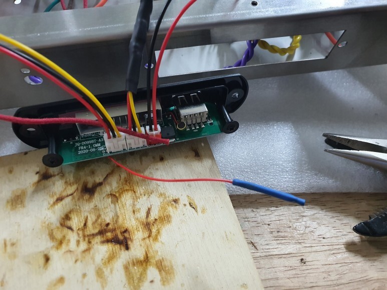 사진 아래부분의 파란색선이 블루투스 정류모듈의 배선 입니다.