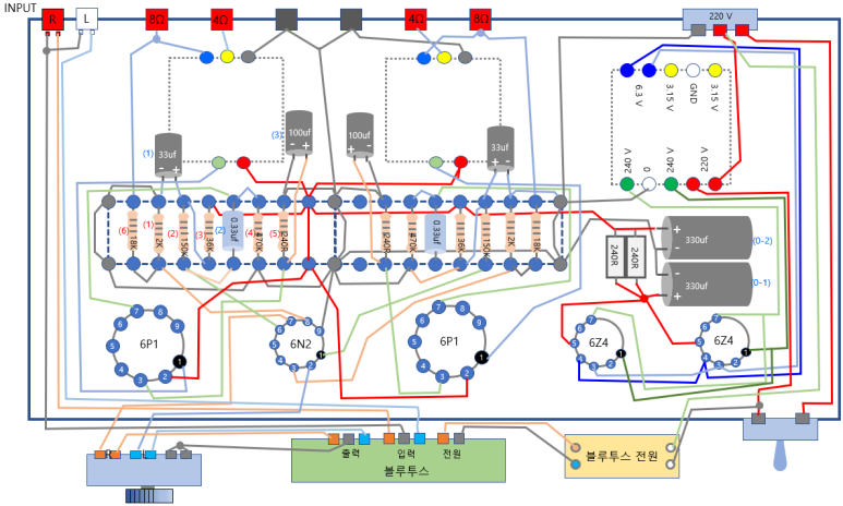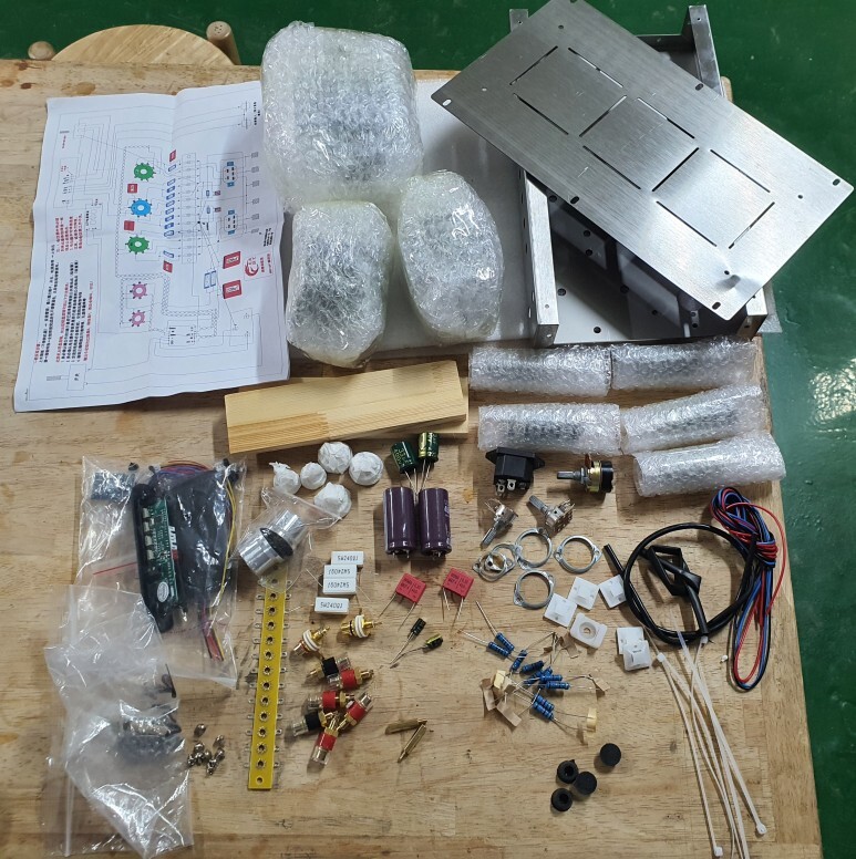 부품들 입니다. 저가의 다른 진공관앰프와 다른건 블루투스모듈 뿐입니다.