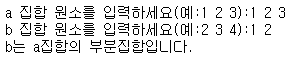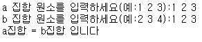 a = input('a 집합 원소를 입력하세요(예:1 2 3):')