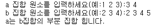 print('a,b 집합은 같지도 서로 부분집합도 아닙니다')