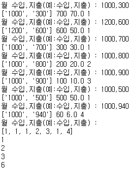 tmp = n.split(',') # tmp[0] = 수입, tmp[1] = 지출