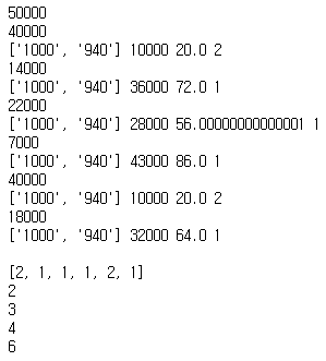 #print(tmp, (int(tmp[0]) - int(tmp[1])), expense_p, rank[-1]) # 상태를 확인하기 위한 코드. 비고(#) 처리하면 됩니다.