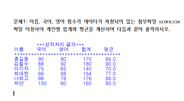 f = open('score.csv', 'r', encoding='utf-8') # 파일 읽기