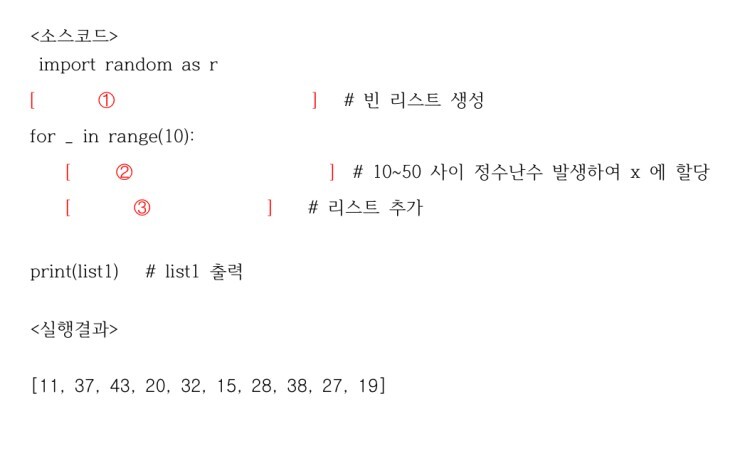 10부터 50 사이 난수 10개를 생성해서 리스트에 추가하는 프로그램 인데요