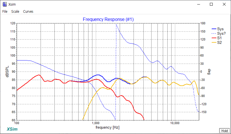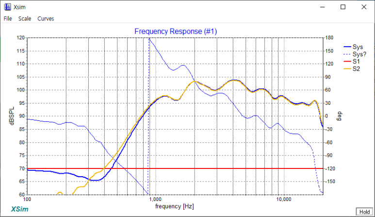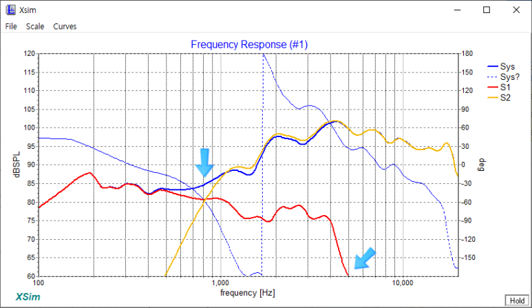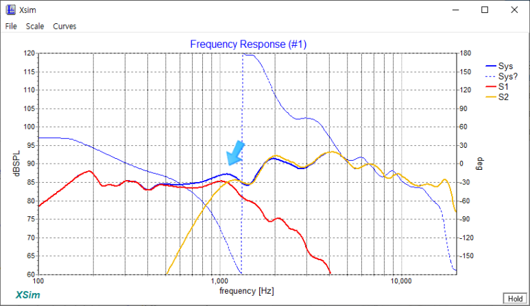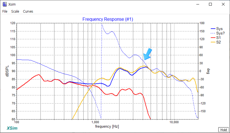 3) 저음과 고음이 만나는 SPL이 83~84쯤에서 82 쯤이 되었습니다.