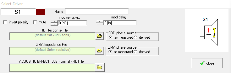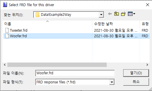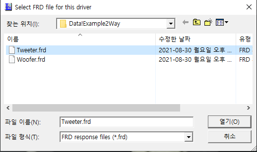 트위터 스피커유닛에 frd 파일을 지정해서 주파수 및 임피던스 데이터를 반영해 줍니다.