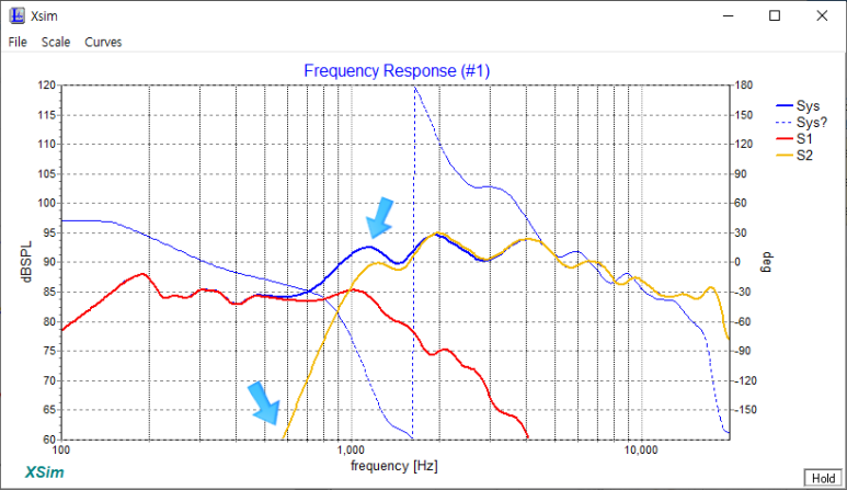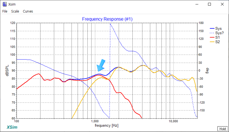 1) 트위터(고음)의 주파수 시작이 230 Hz 쯤에서 500 Hz 쯤으로 높아졌습니다.
